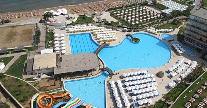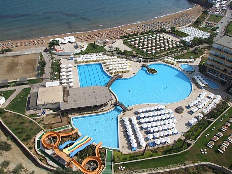 Facilitati: Hotelul este dotat cu un restaurant principal in care sunt servite majoritar alimente (legume, fructe, carne) de provenienta bio, fara aditivi si chimicale, de la ferme locale, un restaurant pe plaja si bar la piscina, ambele servind snackuri, bauturi si cocktailuri. Hotelul detine si un casino propriu, si cel mai mare centru de conferinte din Cipru de Nord, piscina cu aquapark, exterioara, interioara si pentru copii, jacuzzi, sauna, animatie si centru fitness; puteti face sporturi acvatice de-a lungul plajei contra cost si activitati sportive: teren de tenis, teren baschet, volei pe plaja, tenis de masa si darts.
