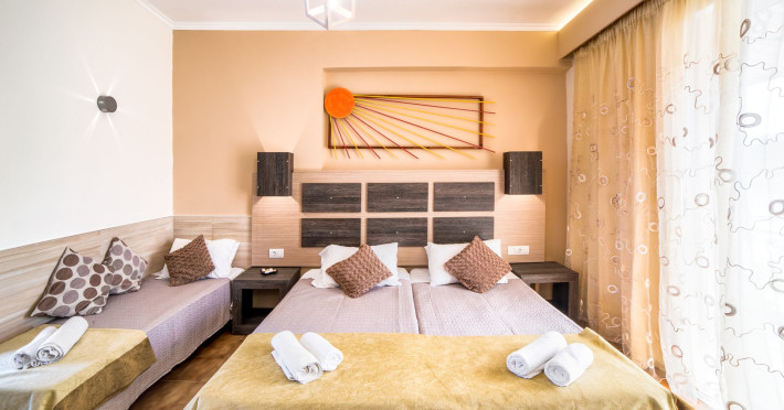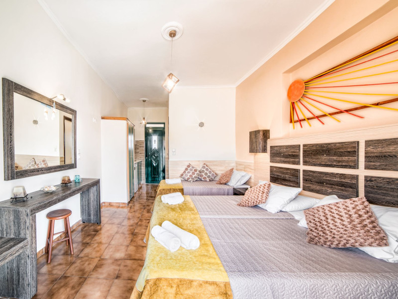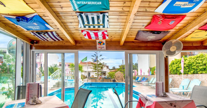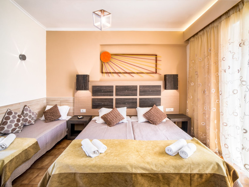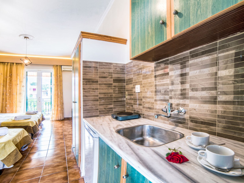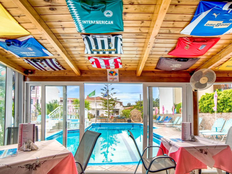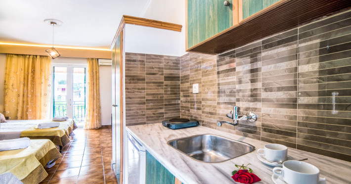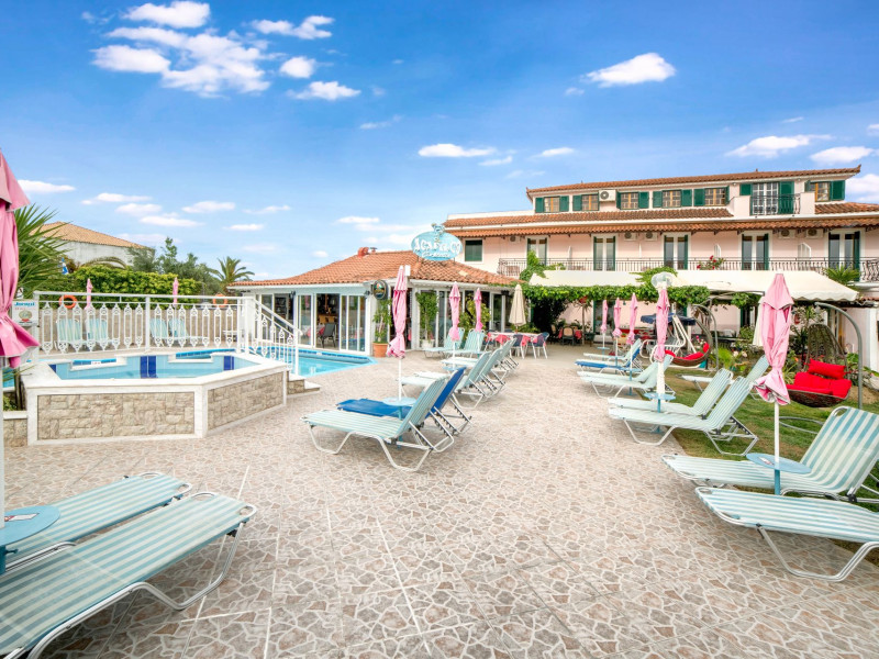 The Acapulco-Marinos studios and apartments complex was established in 1989 and the friendly family owners have many years of experience in the hospitality industry.The complex is located in the island's largest and most famous resort, Laganas, which is 5 kilometres from the airport and main town of Zakynthos. This large, three building complex is set just off the main road of the resort, approximately 950 metres from the beach and close to the centre.The golden sandy beach of Laganas Bay is one of the largest in Greece, around 9 kilometres in length and suitable for families with children due to its warm, shallow waters. The centre of the resort has an energetic atmosphere and is famous for its lively and entertaining nightlife. There is a large variety of restaurants, tavernas, night clubs, bars and facilities of all kinds to choose from.Guests are kindly requested to note that reservations for stays from 1/5/2018 and onwards ,there is a minimum age limit for all guests of 18 Years (as of 1/8/2017).From the above regulation only families traveling with children are excluded.If guests do not meet the above age limit they will not be able to check-in as passport verification is mandatory at their arrival.