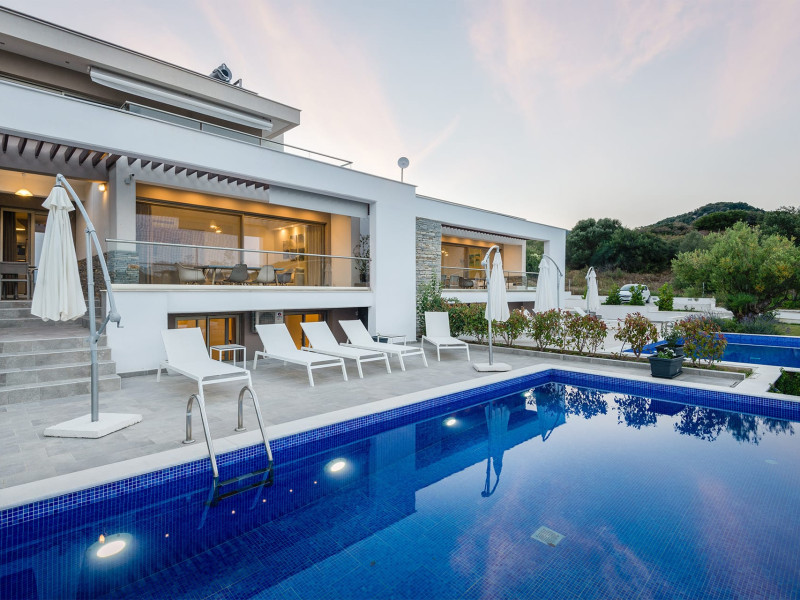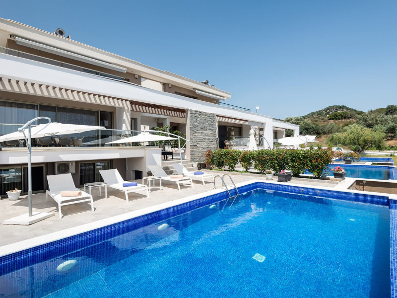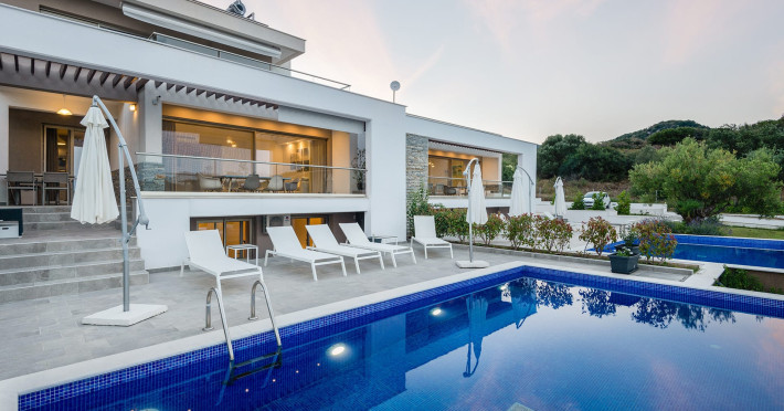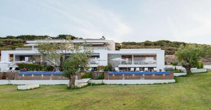 Afisia villas are 6 luxury villas with private pool located in Sarti,Halkidiki. There are 2 types of villas, Magnum villa can accommodate up to 9 guests in beds and Parvus villas can accommodate up to 7 guests in beds.