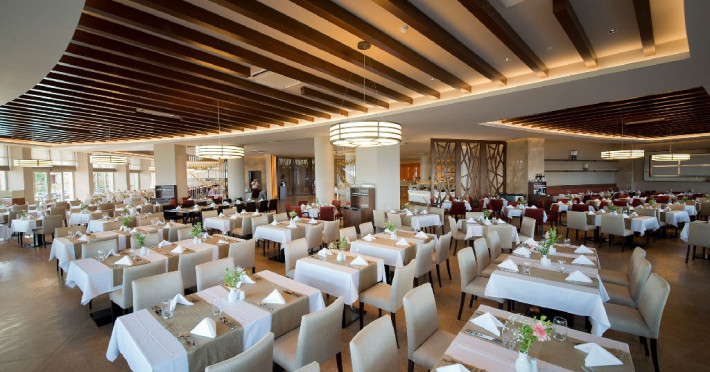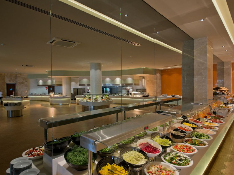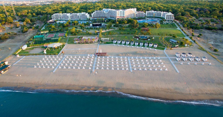 Facilitati hotel: Hotelul pune la dispozitia oaspetilor: restaurant bufet, 5 restaurante a la carte, restaurant barbecue, snack bar, snack restaurant, gozleme, cafenea/patiserie, 6 baruri, 3 piscine exterioare si una interioara, piscina pentru copii cu tobogane, miniclub si loc de joaca pentru copii, centru Spa cu baie turceasca, masaje si tratamente, Wi-Fi gratuit, sala fitness.