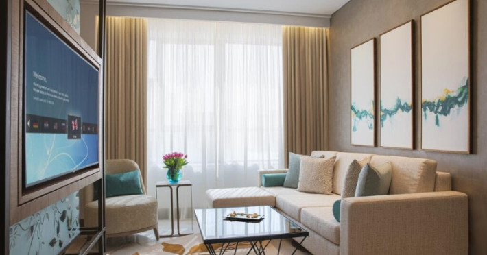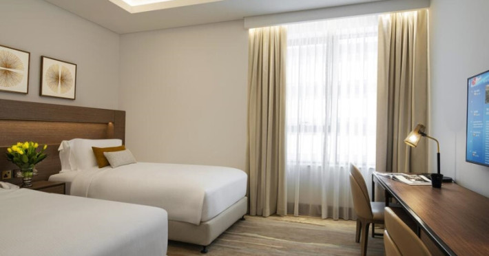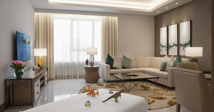 Amplasat in Dubai, 4,1 km de Dubai World Trade Centre, Al Jaddaf Rotana Suite Hotel ofera cazare cu un restaurant, gratis privat parcare, o piscina inaerliber si un centru de fitness.Asezat in Dubai, 4,1 km de Dubai World Trade Centre, Al Jaddaf Rotana Suite Hotel ofera cazare cu un restaurant, parcare privata gratuita, o piscina inaerliber si un centru de fitness. Acest hotel de 5stele ofera un club pentru copii si un serviciu de concierge. Cazarea ofera un receptie 24 ore 2C serviciu de camera si schimb valuta pentru oaspeti.unitatile vin cu aer conditionat, un TV ecran plat cu canale satelit, un frigider, o masina de cafea, a bideu, a uscatordepar si un birou. Cu o baie privata cu dus si articoledetoaleta gratuite, camere la hotel au deasemenea WiFi gratuit. Toate unitatile au un dulap.Al Jaddaf Rotana Suite Hotel ofera un micdejun continental sau bufet.Cazarea ofera cazare 5stele cu sauna si terasa.Exista un bar la-fatalocului si oaspetii pot deasemenea utiliza zona de afaceri.Dubai Mall seafla la 6 km de Al Jaddaf Rotana Suite Hotel, intimpce cel aproape aeroport este Dubai International, 4 km de hotel, si proprietatea ofera un aeroport platit transfer serviciu.