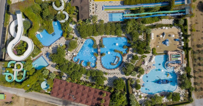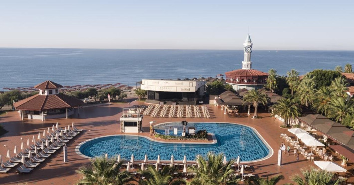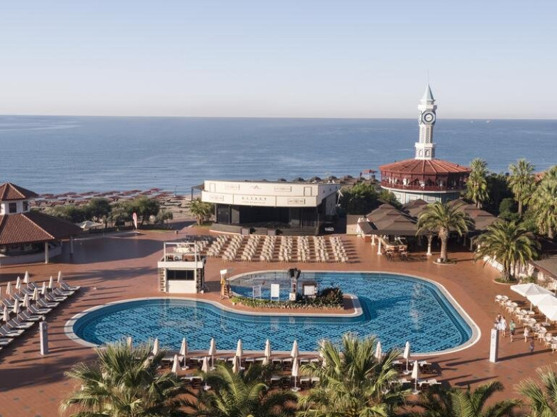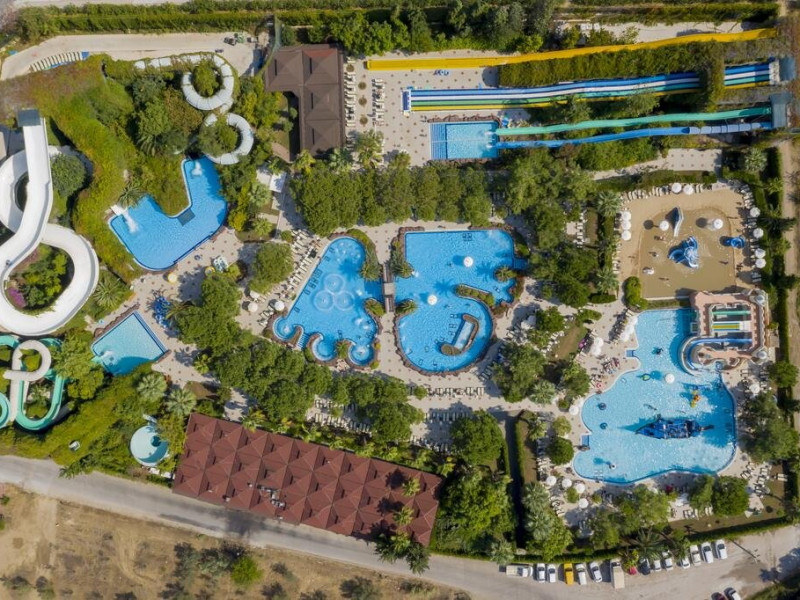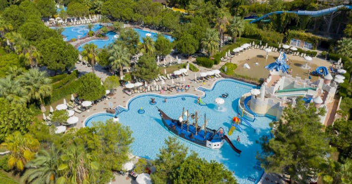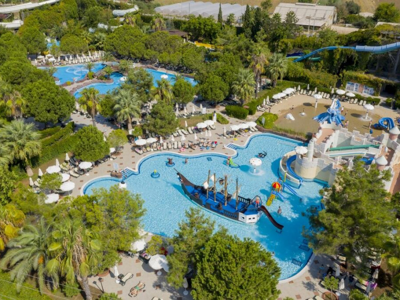 Construit in anii 1991 (Club Manavgat), respectiv 1995 (Club Park Manavgat) si renovat in 2008, cu o suprafata totala de 380.000 mp, complexul dispune de 900 de camere, repartizate astfel: ? camere standard (suprafata de 26 mp); ? camere pentru persoane cu dizabilitati; ? camere superioare (suprafata de 26 mp); ? camere family alcatuite din doua camere standard conectate, cu usa intre ele; ? camera family superioare (suprafata 40 mp, un dormitor cu pat dublu si unul cu paturi separate), cu usa intre ele. Localizare: pe malul marii, la 90 km de centrul orasului Antalya si la 85 km de aeroport. Hotelul se afla situat la 12 km de Manavgat, 17 km de Side si 60 km de Alanya. Dotari camera: telefon, TV satelit, radio, minibar, aer conditionat, seif, uscator de par, balcon. Podeaua este din gresie sau marmura, internet wi-fi. Facilitati hotel: 3 restaurante principale, restaurant a la carte, restaurant pe plaja, 13 baruri, cafenea turceasca, o piscina exterioara mare si o piscina pentru relaxare, aquapark (25.000 mp cu 9 tobogane pentru adulti si 6 tobogane pentru copii, restaurant, bar, diverse distractii), mini club pentru copii (4-12 ani), baie turceasca, sauna, tenis de masa, mini fotbal, baschet, volei si fotbal pe plaja, jogging, darts, boccia, tir cu arcul, animatie, discoteca si discoteca in aer liber. Servicii cu plata: bauturile din import, sucuri din fructe la bar, rezervare restaurant a la carte, babysitter, telefon, centru de tenis (62 terenuri pe zgura) si echipamentul, spalatorie, masaj, doctor, sporturi acvatice, fotograf, sala de jocuri, fitness, biliard, fotbal, inchiriere masini, coafor si frizerie, centru comercial. Plaja de pietricele cu nisip. Sezlongurile, umbrelele si prosoapele sunt gratuite. Tenis: - in complexul Alibey Club/Park Manavgat exista 62 terenuri de tenis cu zgura; unul dintre ele este terenul central, care are si tribune pentru spectator; - exista si doua terenuri pe zgura si doua terenuri mini motorizate special pentru copii, dar si un perete de squash; - centrul de tenis este cel mai cunosc la nivel international, de pe coasta Mediteranei si este perfect atat pentru antrenamentul profesionistilor, dar si pentru amatori, pentru jocul in echipa sau singur; - scoala germana PCT, pe langa antrenamentele profesioniste pentru meciuri ofera si instructaj pentru diferite niveluri de pregatire, se ocupa de turnee saptamanale, etc; - in acest complex sportiv exista si magazin cu articole sportive (Adidas si Wilson), serviciu de racordare a rachetelor, inchirieri de rachete, un birou de informatii si un bar; alte facilitati sunt: masina de aruncat mingii, analiza pe calculator, cursuri cu metode speciale pentru copii; - toti instructorii de tenis detin certificate DTB/VDT. Aquapark: - construit pe o suprafata de 25.000 mp; - 9 tobogane pentru adulti si 6 tobogane pentru copii; - facilitati pentru adulti: space bowl, blakhole, rafting, tobogane pentru intreaga familie, bighole, kamikaze cu barcuta, kamikaze, topogane de mare inaltime, piscina cu diverse activitati; - facilitati pentru copii: mini kamikaze, mini tobogane, mini rafting, o nava a piratilor, diverse figurine de animale, loc de joaca pentru copii, piscina de nisip pentru bebelusi; - restaurant si bar. Alte informatii: - accesul in pantaloni scurti la cina nu este permis; - toate cartile de credit sunt acceptate; - animalele de companie nu sunt permise. Hotelul isi rezerva dreptul de a modifica conceptul in timpul sezonului fara a anunta in prealabil aceste modificari. Website: www.alibey.com