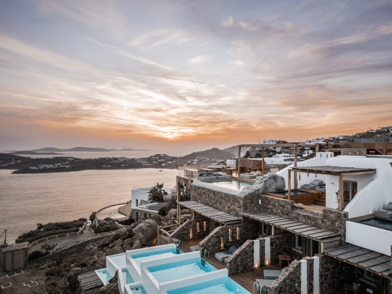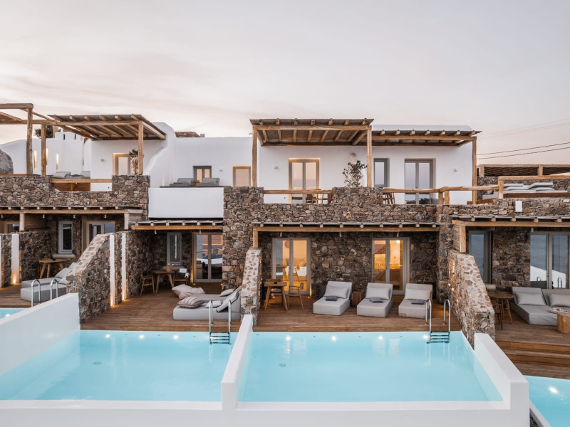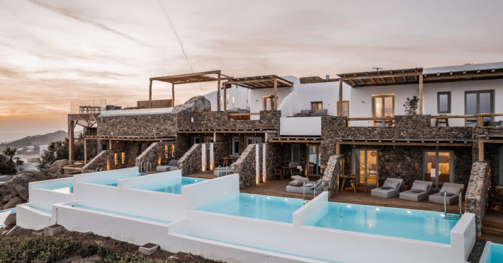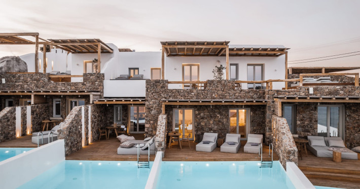 Much more than just a stay—an experience to remember.Perched on the hillside above the world-famous Psarou Beach, just 5 km from the vibrant heart of Mykonos Town, Alissachni Luxury Boutique Hotel offers a privileged escape with breathtaking, unobstructed views of the Aegean Sea.Nestled in the serene Saint Lazaros area, where iconic Cycladic architecture meets the island’s irresistible energy, the hotel embraces the charm of Mykonos while surrounding guests with peace and beauty.Alissachni features 21 exclusive suites, each thoughtfully designed to offer the ultimate in privacy and comfort. Every suite comes with either a private pool or a private jacuzzi, creating a haven of luxury where guests can unwind in complete seclusion while gazing out over the endless blue.Designed with a harmonious blend of natural materials and refined elegance, every space radiates warmth and sophistication. The interiors and furnishings are thoughtfully curated to create an atmosphere of relaxation and well-being.Spacious verandas, private sunbeds, and the mesmerizing seascape invite our guests to indulge in unforgettable moments of leisure, tranquility, and pure indulgence.