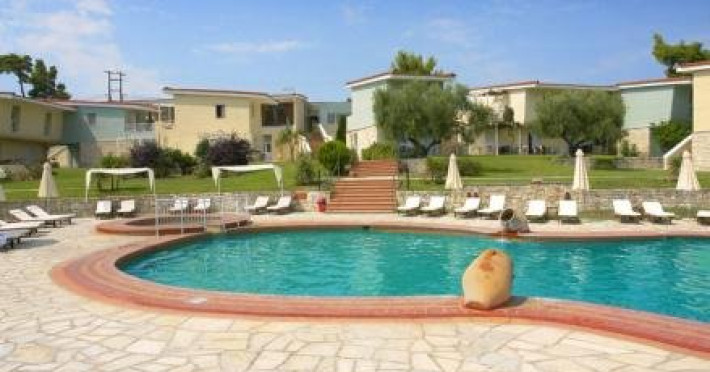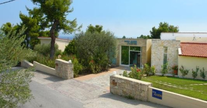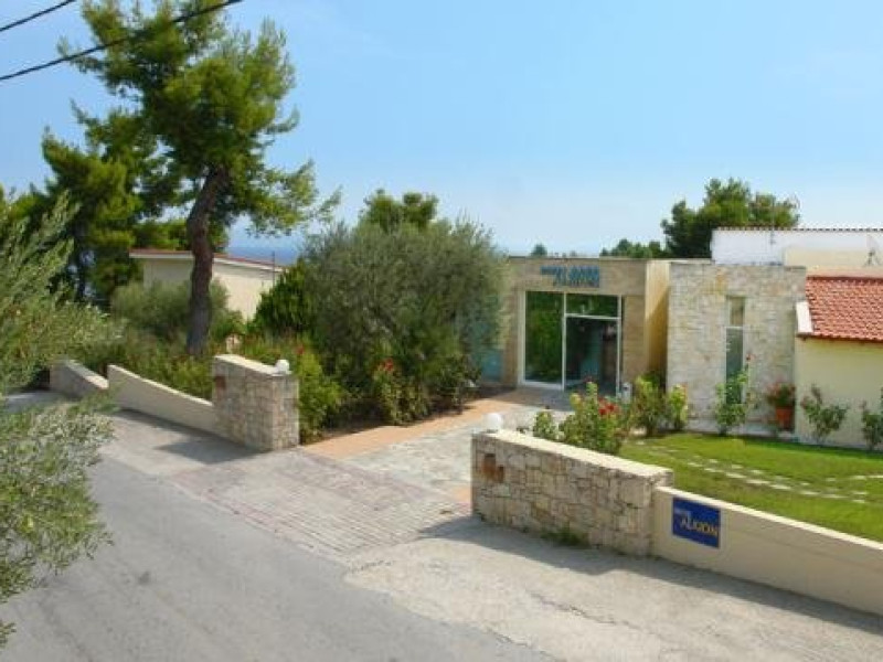 Localizare: Pozitionat in statiunea Kripigi la aproximativ 15 min de mers cu masina de orasul Kassandra, hotelul Alkion se intinde pe o suprafata de 15 acri, intr-o gradina plina de verdeata si cu vedere la marii. Complexul dispune de 50 de studiouri si 9 apartamente din care 2 cu jacuzzi. Facilitati hotel: Complexul este recomandat familiilor cu copii, dar si persoanelor in cautare de liniste datorita amplasarii acestuia. Principalele facilitati ale hotelului sunt: piscina exterioara cu sectiune separata pentru copii, restaurant, pool bar, teren de joaca, sala de jocuri, sezlong si umbrele la piscina, shuttle bus si parcare. Dotari camere: Toate camerele sunt dotate cu aer conditionat, TV, frigider, telefon, seif, balcon sau terasa. Pagina web: http://www.alkion-hotel.com/en