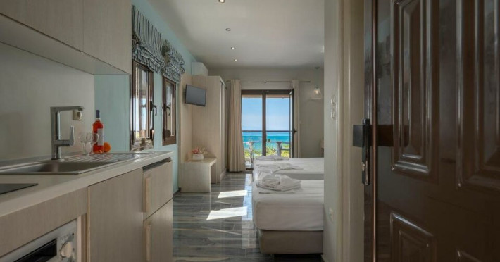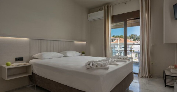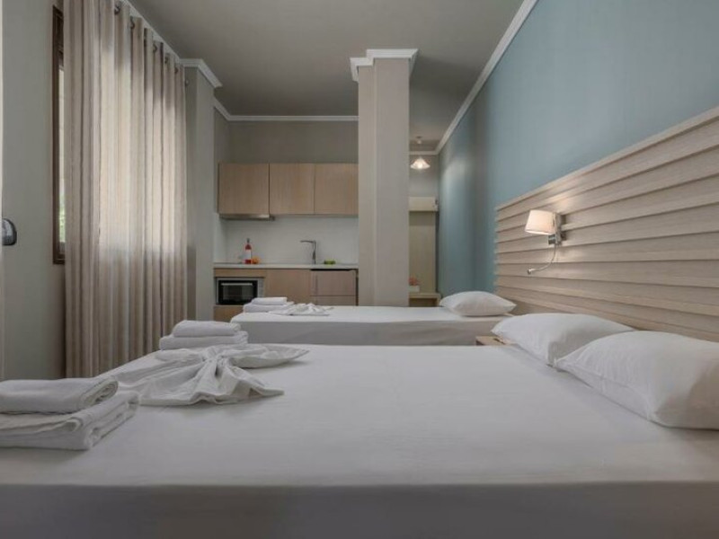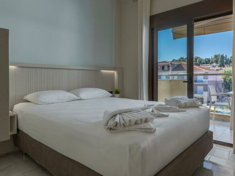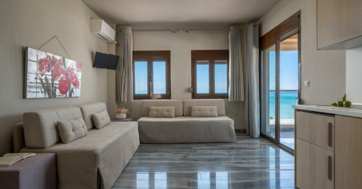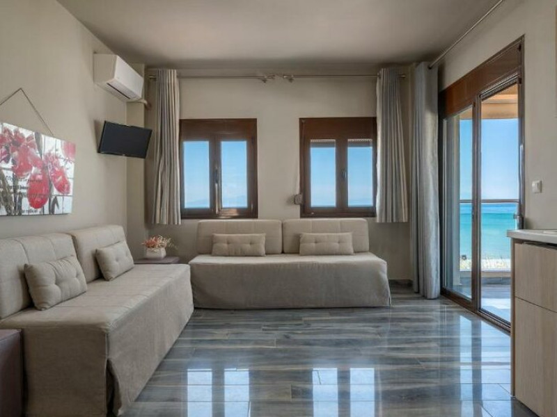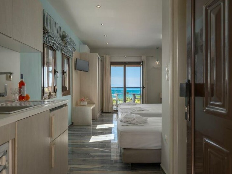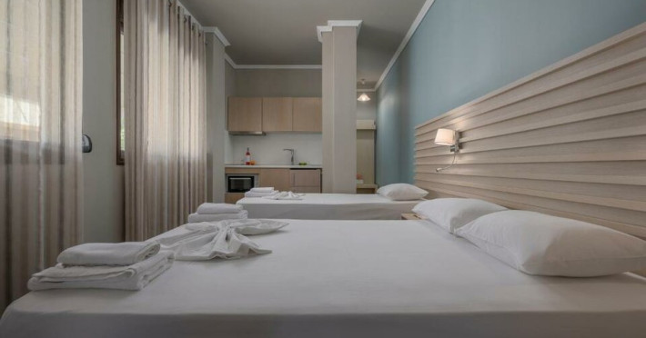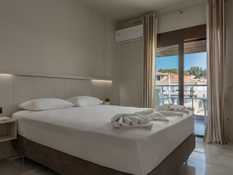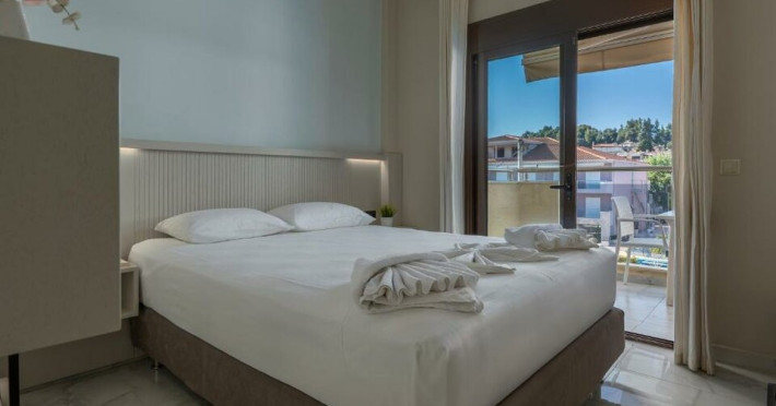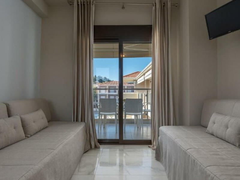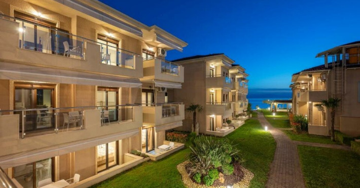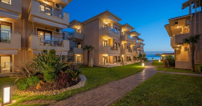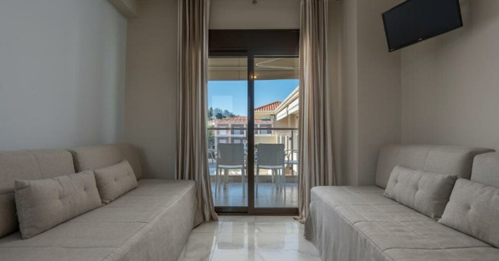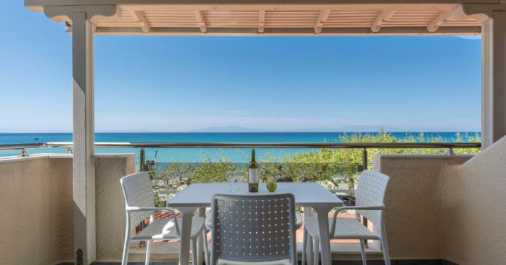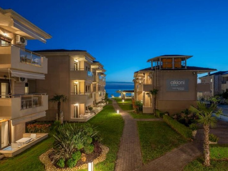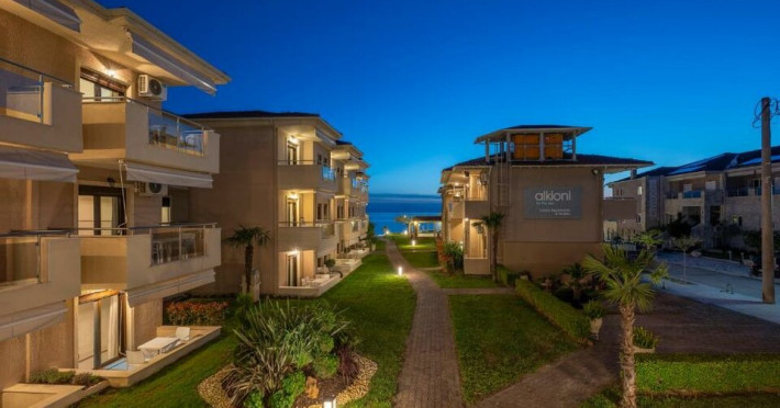 Siviri is a seaside village on the Kassandra Peninsula, the first leg of Halkidiki. It has a beautiful sandy beach and a sea with crystal-clear waters, ideal for swimming and relaxation. As a popular holiday destination for families, couples and groups, here you will enjoy unforgettable summer vacations. Situated in the pedestrian street, near the shallow sea, Alkioni by the sea is a self-catered property with fully renovated thoughtfully designed studios and apartments, set within a beautiful garden. Enjoy the blue waters all day in front of the organized beach with beach chairs and umbrellas, treat yourself to a meal or a drink with a view of Mount Olympus, relax by taking a stroll along the seaside footpath and enjoy the carefree summer.
