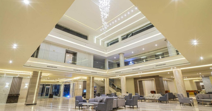 Facilitati hotel: Oaspetii pot beneficia de restaurante, restaurante A la Carte, baruri, piscine exterioare, plaja privata, sezlonguri si umbrele, aqua park, centru spa, fitness, teren tenis, tenis de masa, boccia, volei, zumba, yoga, salon de infrumusetare Wi-fi in lobby.