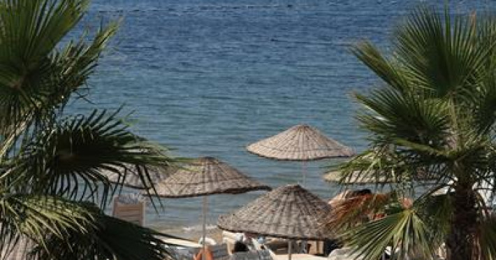The quietly situated hotel consists of totally 106 rooms, offers a big entrance lobby with a reception desk, TV room, indoor and outdoor restaurant, lobby bar, snackbar, a swimming pool with a children section and 100 m long sandy beach. Sun beds, mattresses and beach towels are free of charge both at the pool and the beach.