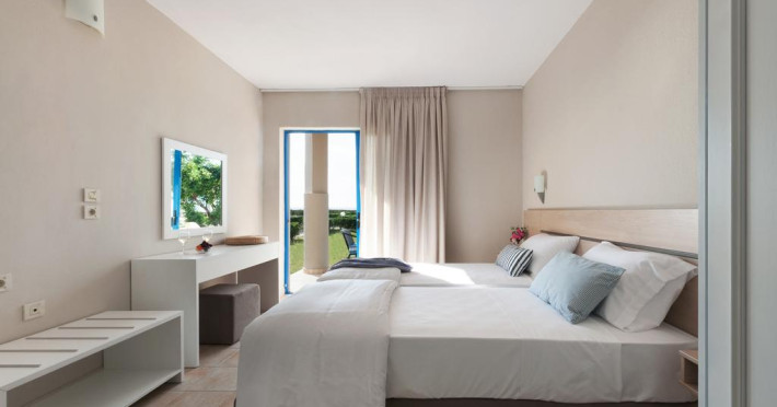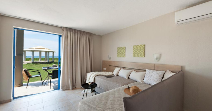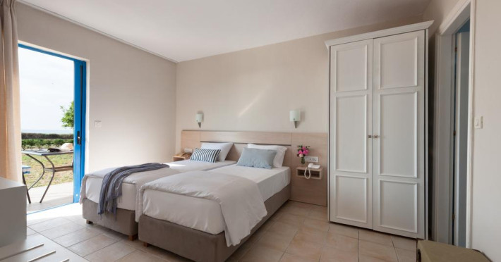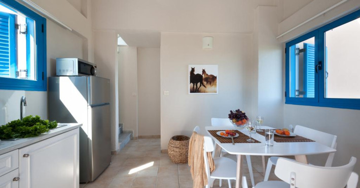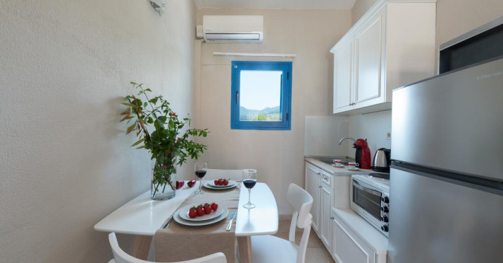 The Ammoudia Maisonettes building-complex is situated on the north coast of Corfu, in location Almyros, near the small town Acharavi, one of the most picturesque on the island of Corfu. It is located by the sea of Almyros, with the sandy beach, hence its name. This particular part of the island is known for its stunning panoramic view of the northwestern part of Corfu, the coast of Albania and the crystal-clear waters of the Ionian Sea. It is 40.00 km from the town of Corfu (about 45 minutes) and 1.0 km from the center of Acharavi. It is easily accessible via the central provincial highway E17, from which starts the municipal road that touches the stadium and ends up on the beach.