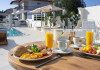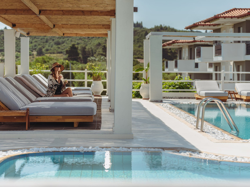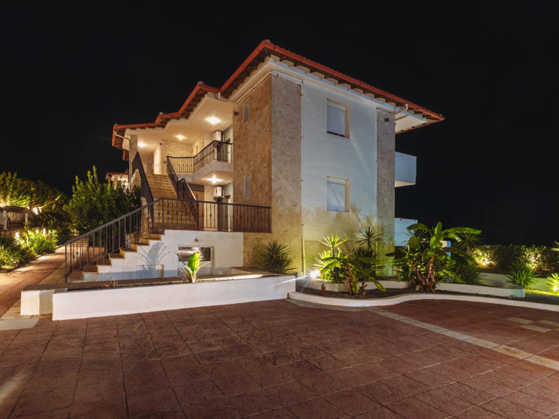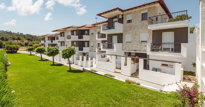 Location This apartment hotel is situated about 800 m from the beach, in a quiet location some distance from the city centre â ideal for those who appreciate tranquility or would like to stroll through Hanioti. Guests can reach bus routes within about 550 m. Facilities The apartment hotel was modernised in 2019. The hotel has 25 apartments. English-speaking staff at the reception desk in the lobby are ready to assist you with check-in and check-out. Guests receive a welcome drink upon arrival. Amenities include a baggage storage service and a safe. Wireless internet access in public areas allows guests to stay connected. A garden provides extra space for rest and relaxation in the open air. Guests arriving by car can park their vehicles in the car park for a fee (subject to availability). Other services include a car hire service, medical assistance and a transfer service. Active guests can make use of the bicycle hire service (for a fee) to explore the surrounding area. A photocopier is available for guests business needs. Rooms Rooms feature a living area and a bathroom, and air conditioning ensures just the right temperature. Guests can enjoy the garden view from a balcony or terrace. Separate bedrooms are available. All comfort rooms have 1 King or 2 single beds. All executive rooms have 1 king and 1 single bed or 3 single beds. For extra adult/child in comfort or executive rooms we are placing an extra bed upon request for a fee. Guests may securely store their valuables in a safe. The kitchenette comes with a mini fridge and a stovetop. Other features include a telephone, a flatscreen television and WiFi (no extra charge). Slippers are included. Bathrooms are equipped with a shower and a hairdryer. For extra comfort in the bathrooms, guests are offered cosmetic products. 1 family room is available for parents with children. Sports/Entertainment The outdoor pool complex provides invigorating refreshment. A terrace with sun loungers and parasols is available. The hotel offers a variety of outdoor sports, including jogging. For a fee, guests can also enjoy fishing and horse riding. For sports enthusiasts who wish to work out indoors, pilates is available for a fee. Guests can relax and unwind in the wellness area (massage treatments). Third-party operators offer massage treatments. Meals There is a bar on the premises. Bed and breakfast is offered as a catering option. A continental breakfast buffet guarantees a great start to the day. Special meals, including vegetarian dishes, are also available. The apartment hotel also offers snacks. For a fee, there are also non-alcoholic beverages and alcoholic beverages. Payment The hotel accepts the following credit cards: VISA and MasterCard.