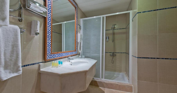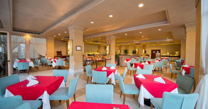 The hotel Amphoras Blu Hotel**** is located approximately 350 m from a beach. The city centre is around 8 km away. There is a shuttle between the hotel and the airport (for a fee). On the beach are sun loungers, cushions, sun umbrellas and beach toweThe hotel Amphoras Blu Hotel**** is located approximately 350 m from a beach. The city centre is around 8 km away. There is a shuttle between the hotel and the airport (for a fee). On the beach are sun loungers, cushions, sun umbrellas and beach towels available. The hotel is equipped with a 24h reception, a lobby, a supermarket, a boutique, cash machine, a hairdresser, a jacuzzi, parking spaces as well as a TV lounge. Outside there is a childrens pool, where sun loungers and sun umbrellas are available for free. For your entertainment, the hotel offers a theatre and a disco. For the young hotel guests there is a playground. For very young guests, highchairs can also be provided. For conventions and other business meetings, the hotel offers EXTRA_FEE conference rooms with a reception. Catering Your physical well-being is catered for by a restaurant. Distances Airport: approximately at 2 km Sports amp; Leisure To keep your fitness up on holiday, there is a gym for guests to use. In the surrounding you can also try your hand for example at bananaboat riding . If you want to stay on the ball during your holidays, youll find the chance to play football or basketball. During your holiday you can also take part in aerobics courses. There is also the option to play billiards. With beach volleyball, darts and table tennis various other sports offer a lot of variety on holiday. A tennis court with floodlighting can also be used by hotel guests. Also volleyball as well as boccia are offered as further leisure activities. Furthermore, various water sports such as sailing and diving (including rental service) are offered in the area. A sauna (extra fee) and a wellness shower await you in the. The hotel also offers beauty treatments (extra fee). Junior hotel guests can let off steam in the mini disco. In terms of adult entertainment, shows are organized in the evening. Additional information The 2-storey accommodation has a total of 400 rooms.