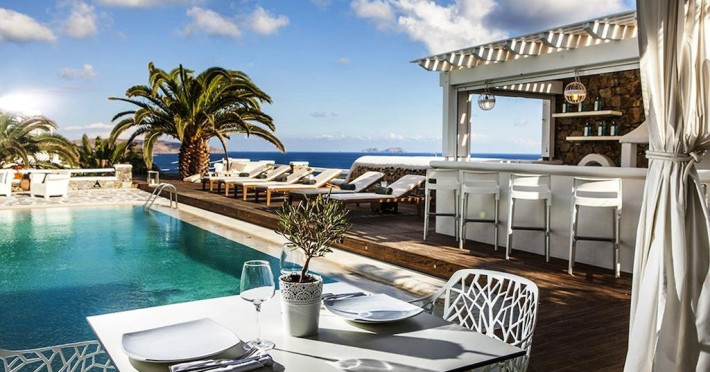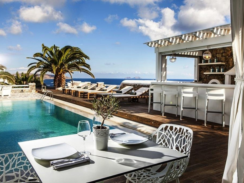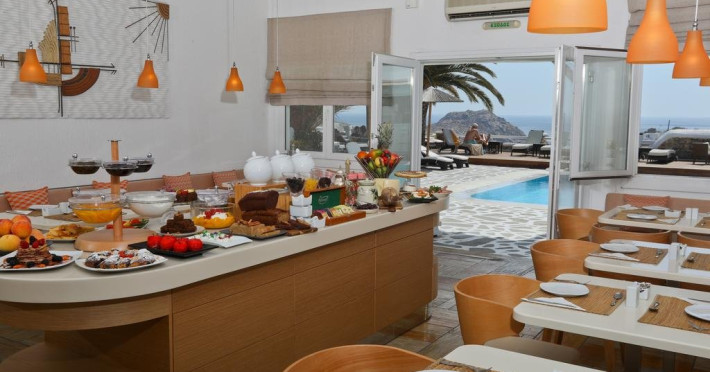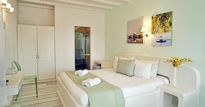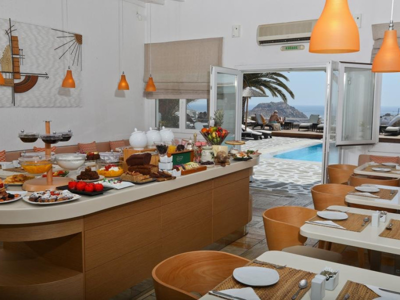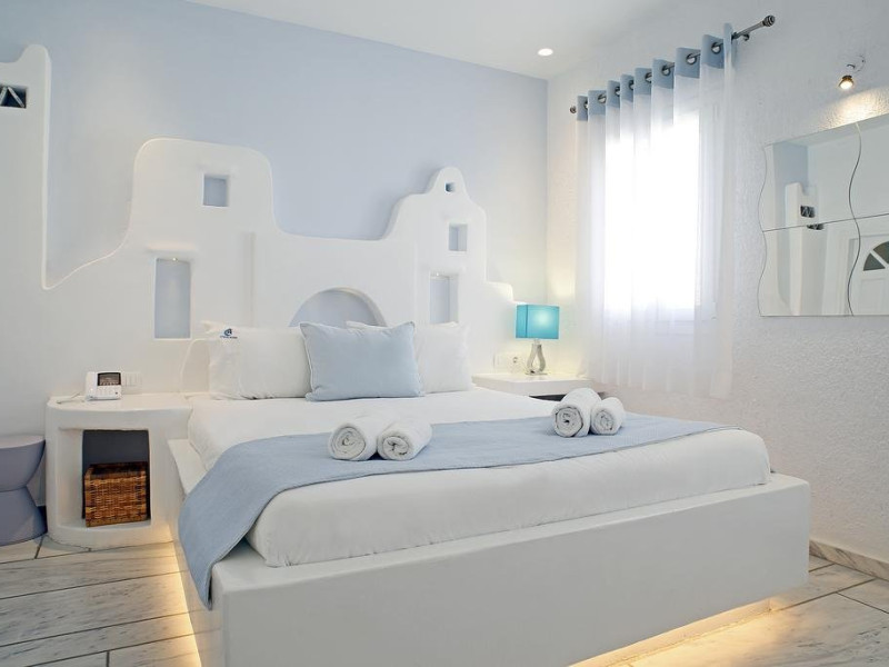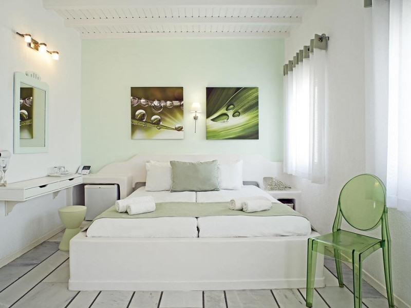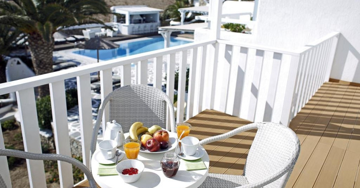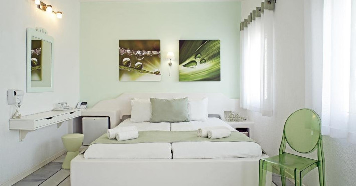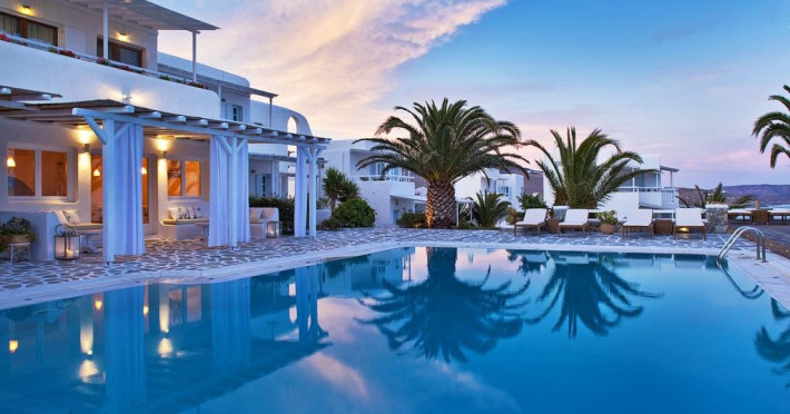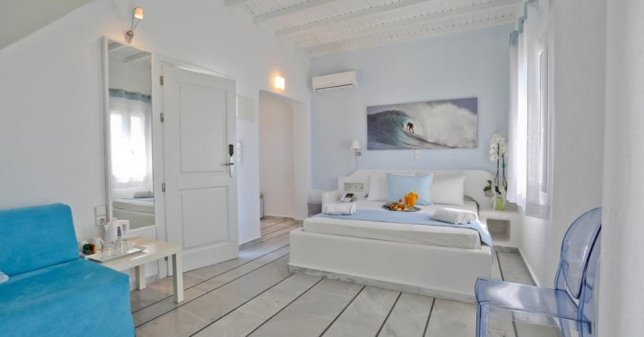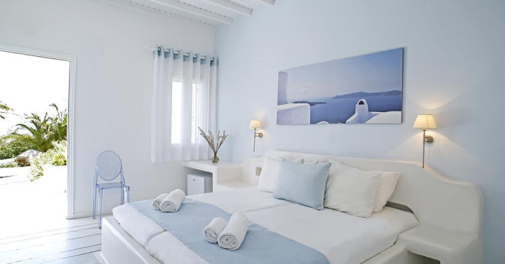 Descriere: hotel renovat recent foarte aproape de cel mai lunga plaja a insulei in Kalafati, una din cele mai calme si relaxante statiuni din Mykonos Localizare: in apropierea plajei din Kalafati, la 12 km de capitala insulei, Mykonos Town si la 16 km de aeroport. In apropierea hotelului se afla o statie de autobuz pentru accesul facil catre alte zone ale insulei Facilitati hotel: hotelul Anemoessa ofera oaspetilor sai piscina, bar la piscina, 2 restaurante, bar, salon TV, internet wireless gratuit, sala jocuri, baby-sitter, parcare, inchirieri auto, biserica Facilitati camere: hotelul Anemoessa are urmatoarele tipuri de camere: standard, superior si suite. Camerele dispun de baie cu dus, aer conditionat, minibar, TV satelit, telefon, accesorii pentru toaleta, uscator de par, papuci, balcon sau terasa cu vedere la mare Plaja: de nisip la aproximativ 150m de hotel, sezlonguri si umbrele contra cost, posibilitate pentru sporturi nautice. Website: www.anemoessa.com