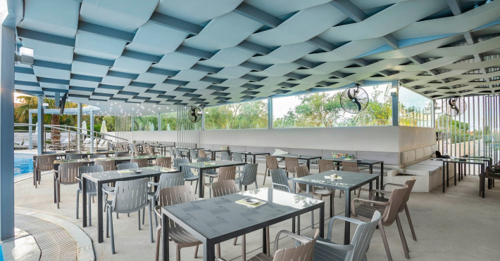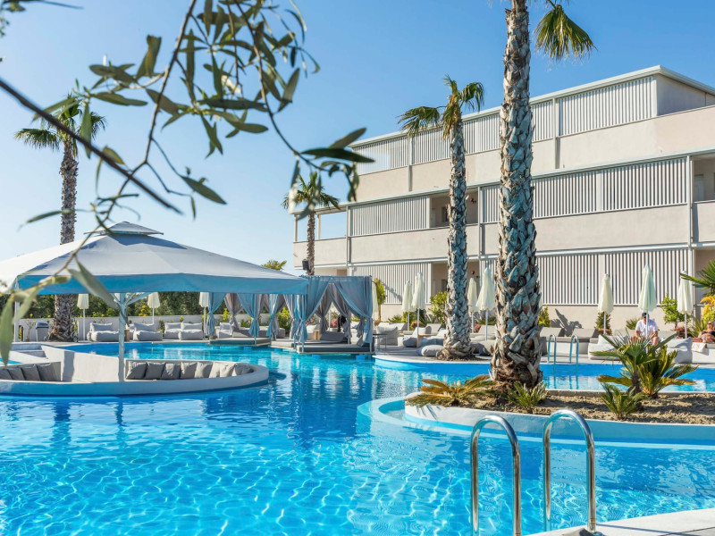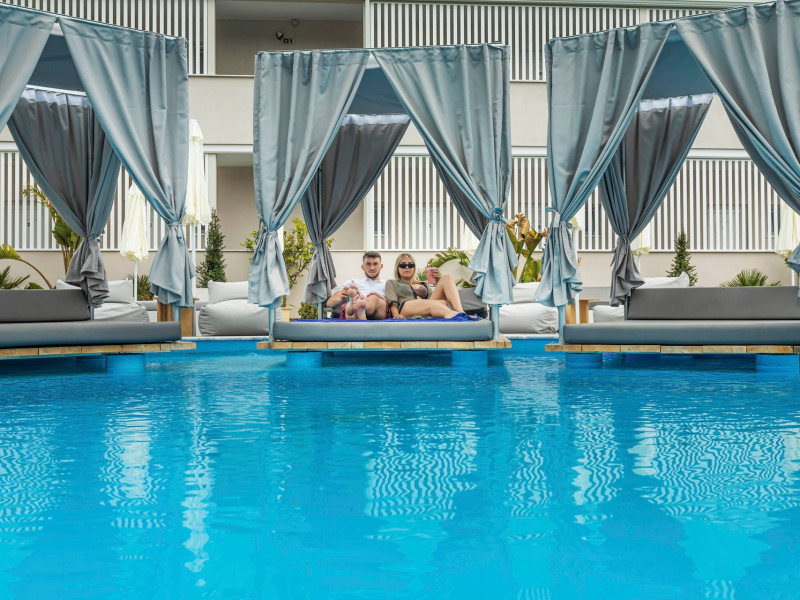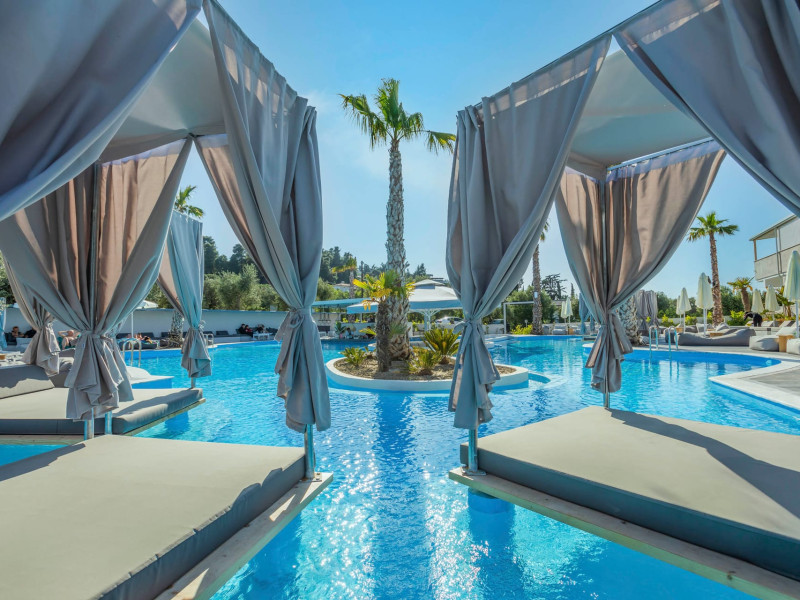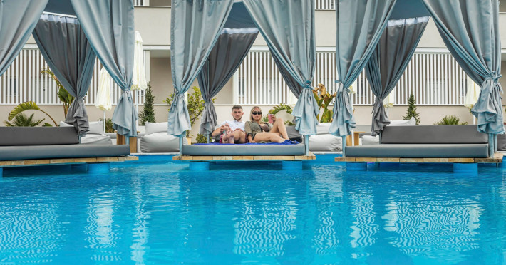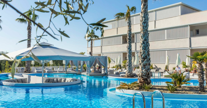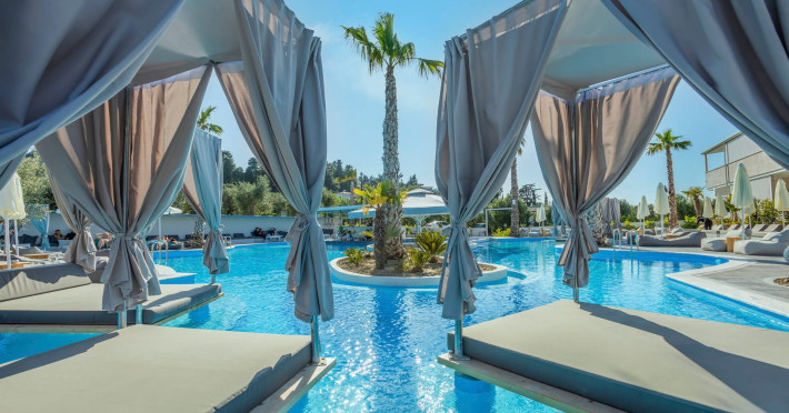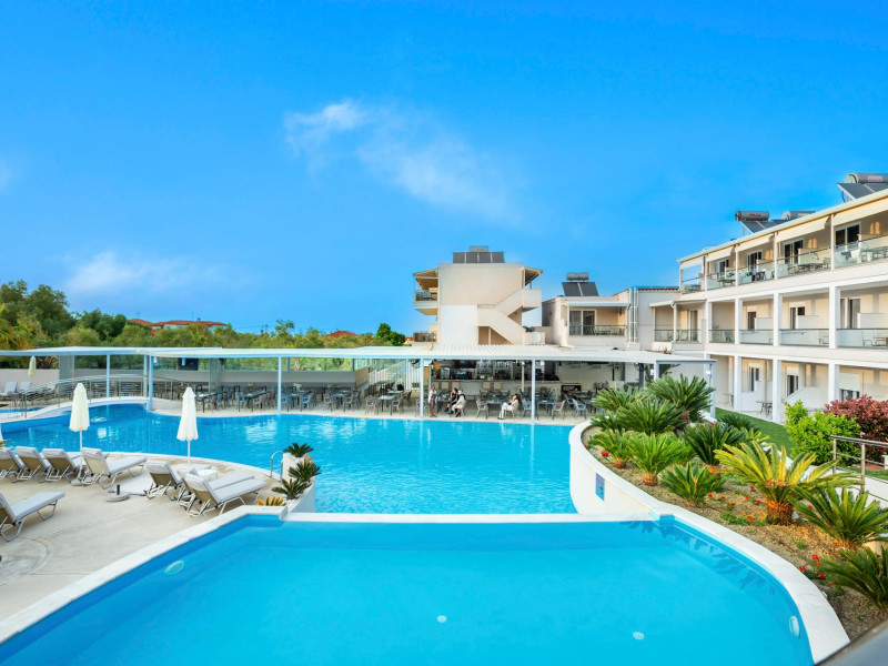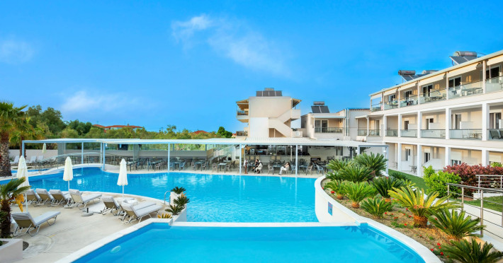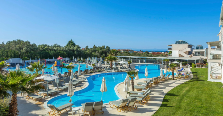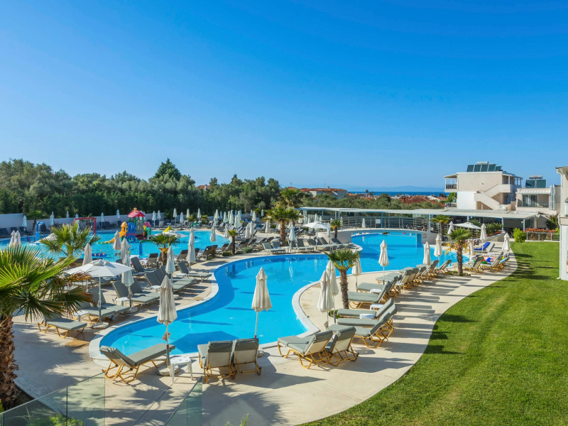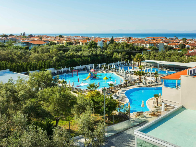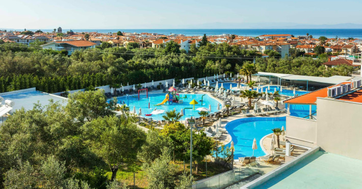 Anna Hotel is a modern and recently renovated Family Hotel with lovely gardens and large swimming pools for adults and childrenâs, located close to the beach and the famous nightlife of Pefkohori. Our Highlights the main pool the adults pool and the splash-park. Ensuring the most exciting family holidays we designed specifically for young guest the splash-park next to our main pool. One of the biggest pool in the area invites you to swim and relax. We serve all our beverages and snacks next to your sun bed. The new 2,000 square foot Adult Only Outdoor Pool, (for those 16 years of age and older), at Anna Hotel has been completed and is open. The new Palm Pool features a poolside bar where you can enjoy a refreshing cocktail in and out the water.