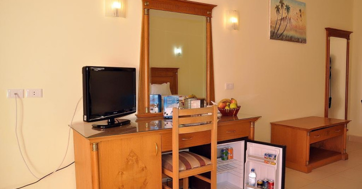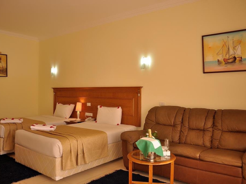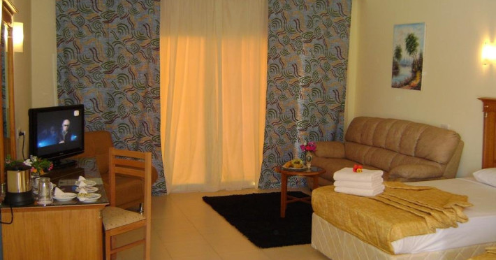 Descriere Hotelul se afla la 700 de metri de plaja. Localizare Hotelul se afla la 8 km de Aeroportul International Sharm el-Sheikh, la 18 km de golful Naama Bay si la 28 de km de orasul vechi. Facilitati hotel Hotelul beneficiaza de 2 restaurante, 3 baruri, piscina in aer liber, doua piscine pentru copii, acces la internet Wi-Fi, doctor, coafor, parcare, darts, tenis de masa, volei, programe de animatie si spectacole, masaj, biliard. Dotari camere Camerele sunt dotate cu baie proprie cu dus sau cada, uscator de par, telefon, televizor, mini bar, seif, balcon sau terasa.