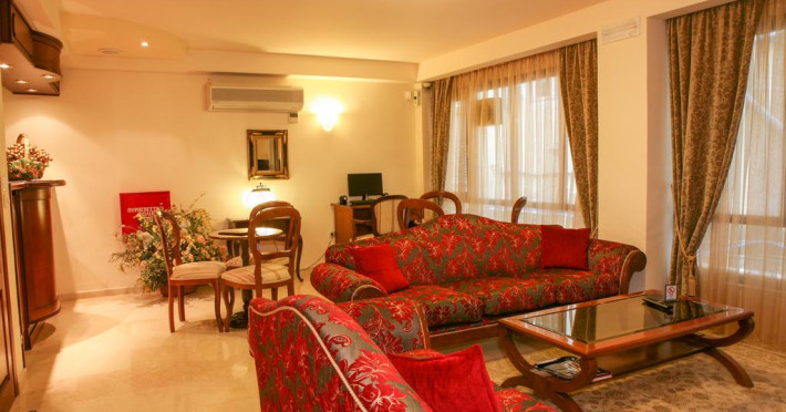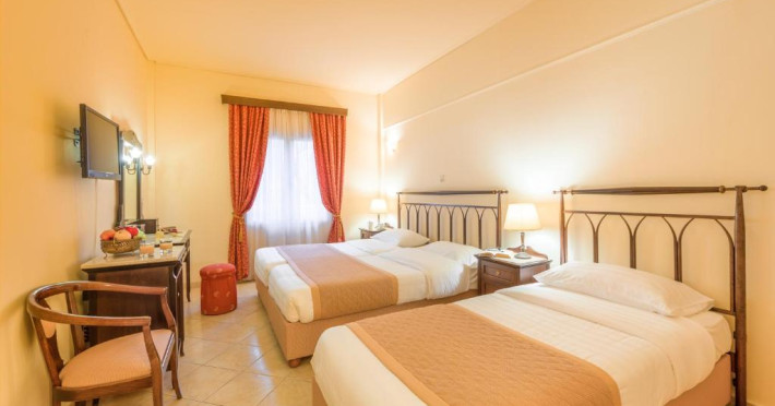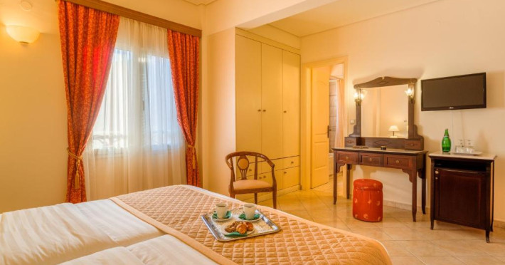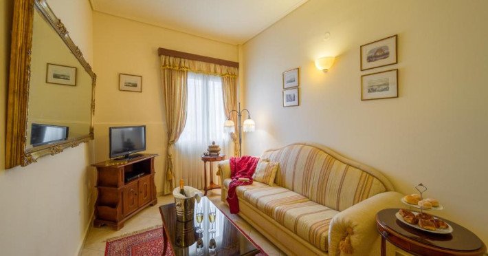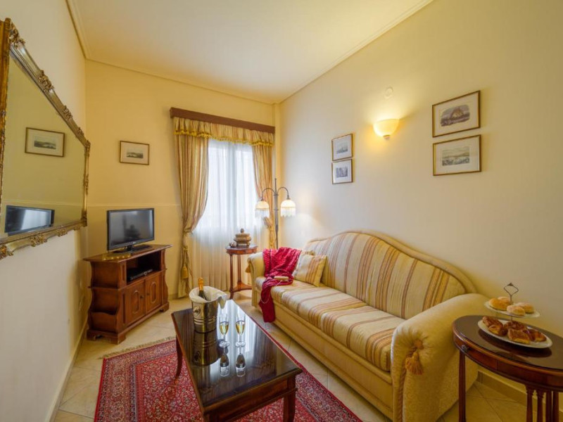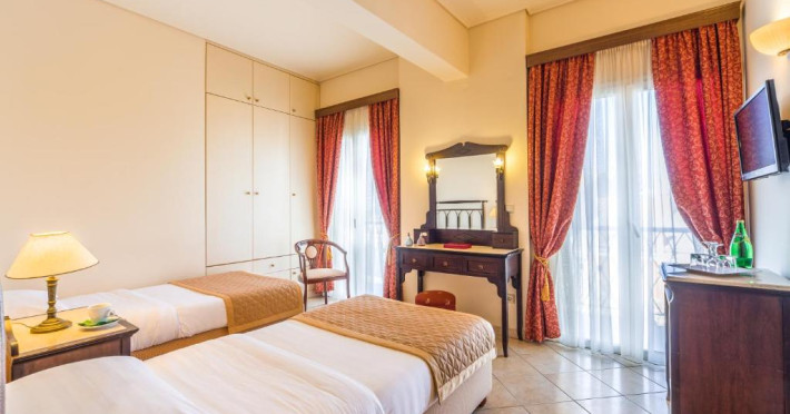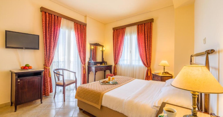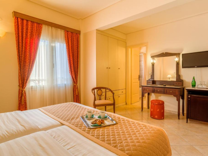 's is appointed with handmade furnishings and rich fabrics. Relax after a day of exploring and watch satellite TV in your room.Start your day with a sumptuous breakfast in Arcadion Hotel's restaurant. Afterwards, enjoy a drink in the luxurious lounge, featuring marble flooring and an Italian piano.