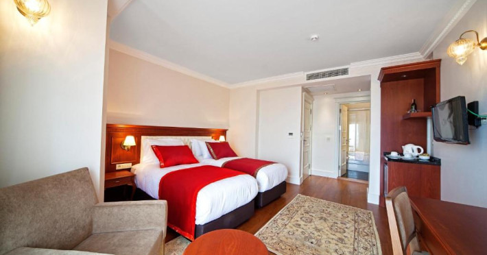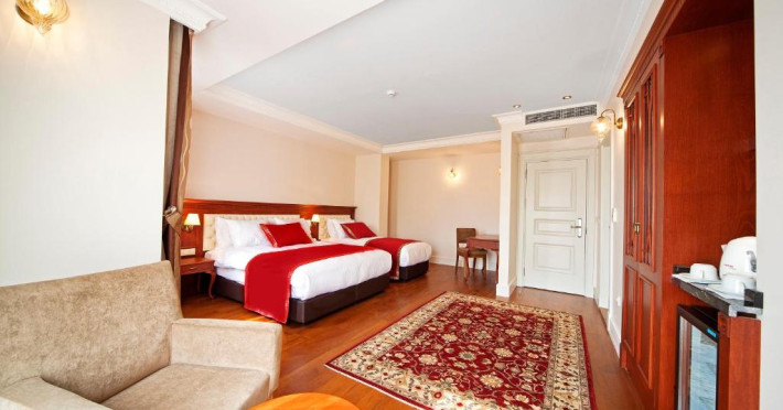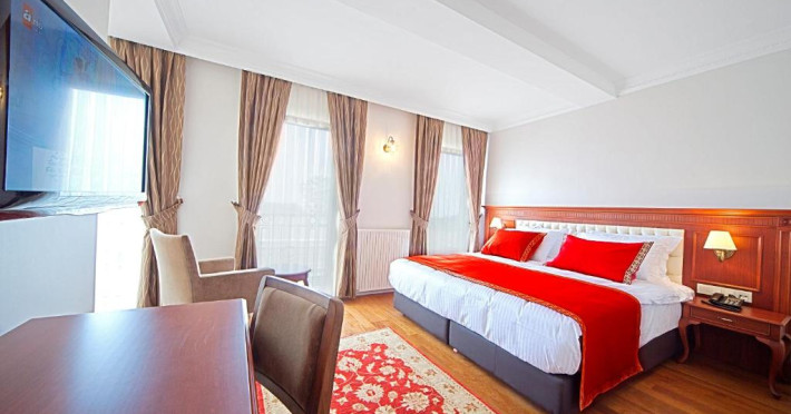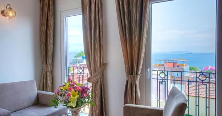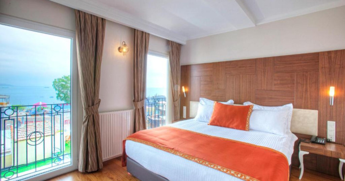 Camerele hotelului imbină elementele tradiționale otomane cu facilitățile moderne, oferind vedere spre Marea Marmara sau spre orașul vechi. Facilitățile includ Wi-Fi gratuit, room service, terasă cu vedere panoramică și un restaurant unde puteți savura specialități turcești autentice.