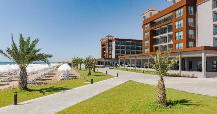 Descriere: Hotelul Arkin Iskele este un hotel de 5* high class, ultra all inclusive, dechis in 2022 si situat direct pe plaja, recomandat vacantelor cu familia, dar si cuplurilor, care ofera servicii de calitate superioara si facilitati diverse .