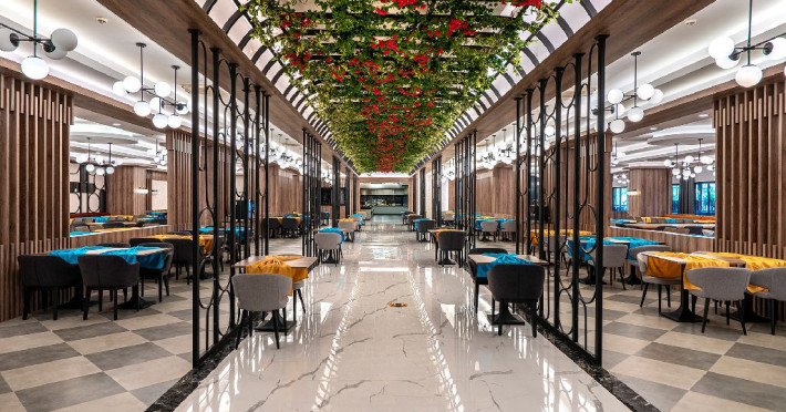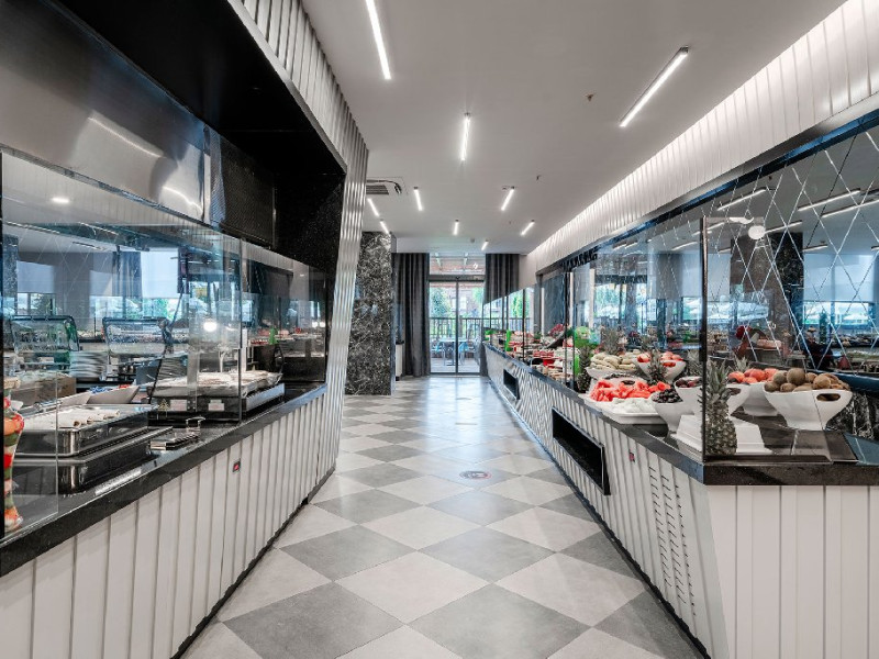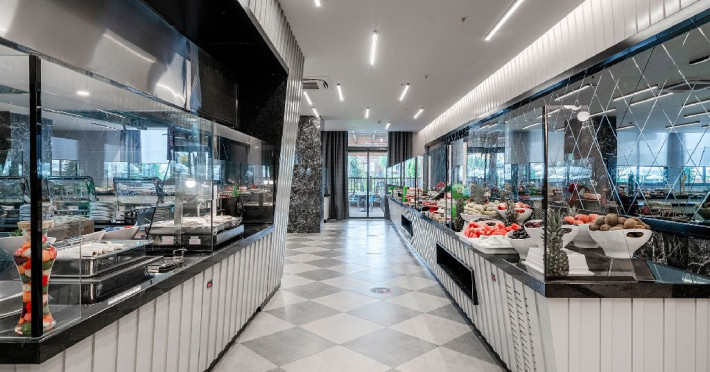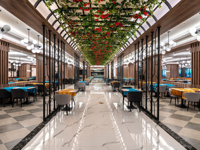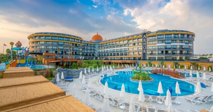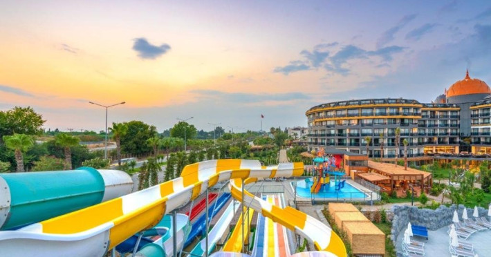 Facilitati hotel: Hotelul pune la dispozitia turistilor: receptie 24h, restaurant principal, 2 restaurante a la carte, diverse baruri, servicu medical cu durata limitata, serviciu de spalatorie, coafor, minimarket, un boutique, spa, baie turceasca, piscina mare pentru adulti, piscina pentru copii, piscina cu 6 tobogane cu apa, sezlonguri si umbrele, prosoape pentru plaja, zona de plaja privata, gradina, centru fitness, club pentru copii, divertisment de seara, loc de joaca pentru copii, tenis de masa, darts, serviciu de inchirieri auto.