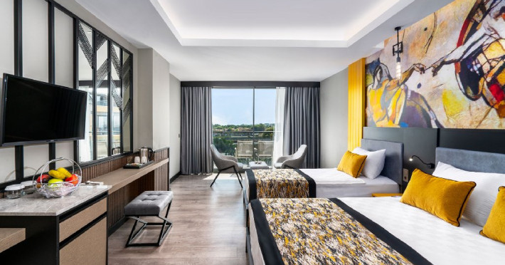 Dotari camere: Hotelul dispune de 335 de camere dotate cu: aer conditionat, TV, minibar, fierbator de apa, seif, baie cu dus si uscator de par.
