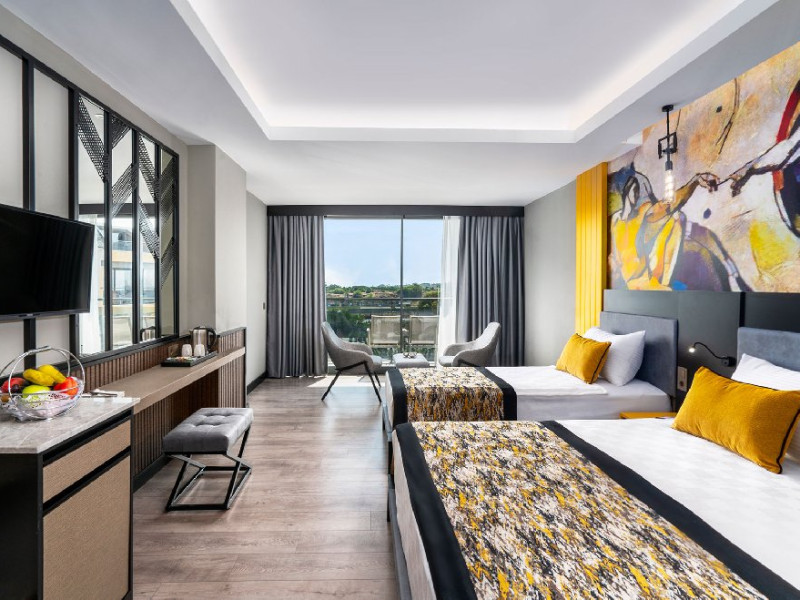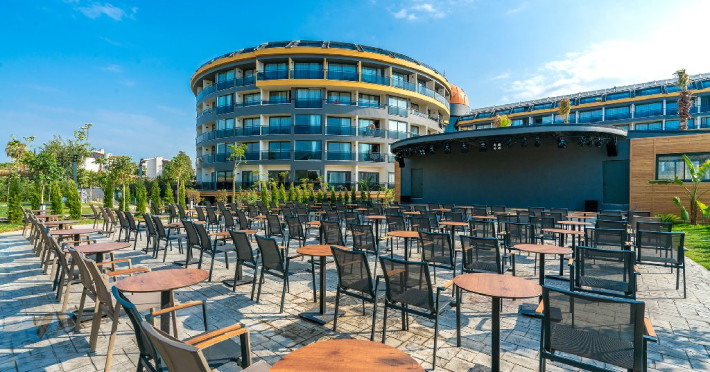 Descriere: Hotelul este situat la aproximativ 1200 de metri de plaja cu nisip si 2 km de centrul orasului antic Side. Ofera o diversitate de facilitati potrivite atat familiilor cu copii cat si tinerilor.