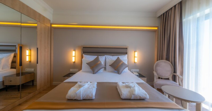 Situat pe malul mării in regiunea mediteraneană, Aydinbey King's Palace & Spa - Ultra All Inclusive oferă o plajă privată cu nisip. Proprietatea include 3 piscine in aer liber, tobogane cu apă, un centru de fitness și facilități spa.