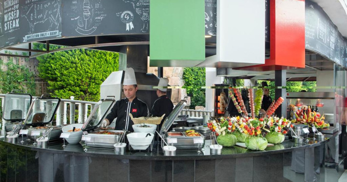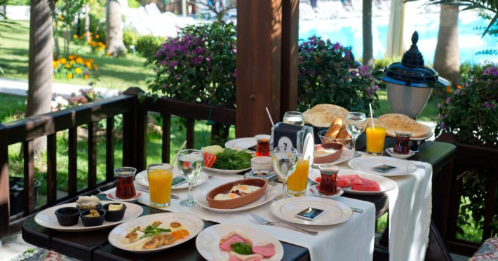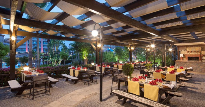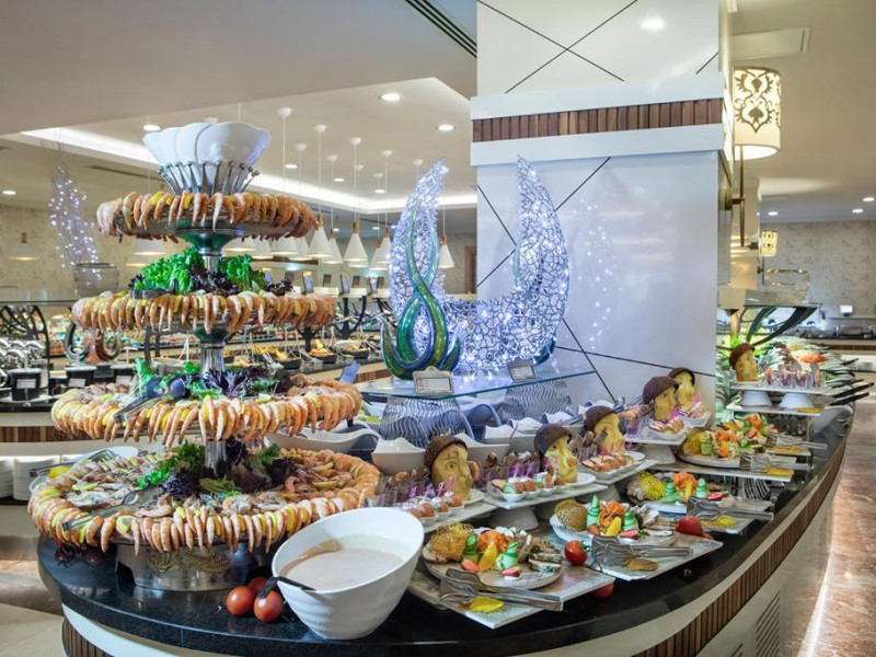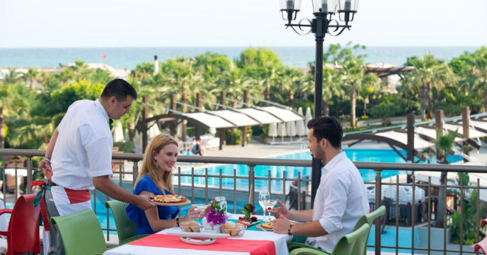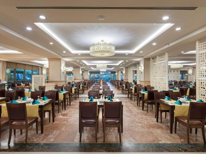 Cu opțiuni de luat masa in interior și in aer liber, Restaurantul King oferă micul dejun, pranzul și cina in stil bufet. Vă puteți bucura de mancăruri alese din bucătăria turcească și internațională. Restaurantele à la carte oferă preparate din bucătăria turcească și din Orientul Indepărtat și fructe de mare. Există, de asemenea, 5 baruri care servesc o varietate de băuturi alcoolice și nealcoolice, precum și o cafenea.