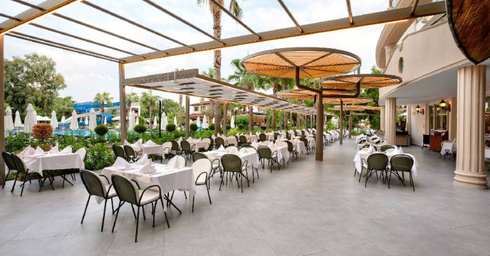 Restaurante si baruri - Restaurant principal - 3 restaurante a la carte (o cina gratuita in timpul sejurului, cu rezervare in avans) - 4 baruri: lobby bar, disco bar, bar la piscina, bar pe plaja ________________________________________ Localizare - Distanta pana la aeroportul din Antalya: aprox. 55 km - Aprox. 12 km pana in centrul orasului Side - Aprox. 15 km pana in centrul orasului Manavgat ________________________________________ Plaja - Plaja privata situata chiar langa hotel - Plaja lata cu nisip si pietris - Sezlonguri, umbrele si prosoape de plaja gratuite ________________________________________ Mese Ultra All Inclusive: - Mic dejun: 07:00 - 10:00 - Mic dejun tarziu: 10:00 - 10:30 - Pranz: 12:30 - 14:30 - Pranz a la carte: 12:00 - 15:30 - Cina: 19:00 - 21:00 - Gustari in timpul zilei: 12:00 - 15:30 - Colt cafea si patiserie: 10:00 - 18:00 - Gustari nocturne: 23:30 - 00:30 Bauturi Baruri: - Bauturi locale alcoolice si nealcoolice selectate: - Bar la piscina: 10:00 - 24:00 - Bar pe plaja: 10:00 - 18:00 si 20:30 - 24:00 - Lobby bar: deschis 24h - Disco bar: 23:00 - 02:00 Alte informatii: - Pachete tip lunchbox disponibile pentru excursii - Contra cost: bauturi alcoolice si nealcoolice importate, sucuri naturale ________________________________________ Program sportiv si de divertisment Pentru toti: activitati la piscina si in gradina, aerobic, tir cu arcul, polo pe apa, spectacole de seara, jocuri de carti, sauna uscata si umeda, baie turceasca, sala de fitness, tenis, tenis de masa, sah, volei pe plaja, baschet, boccia, darts Pentru copii: mini club si program de animatie Contra cost: biliard, tratamente si masaje in centrul SPA, sporturi nautice la plaja ________________________________________ Camere (vezi sectiunea Hotel) ________________________________________ Website oficial www.sidesunbellaresorthotels.com
