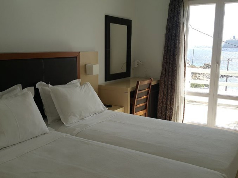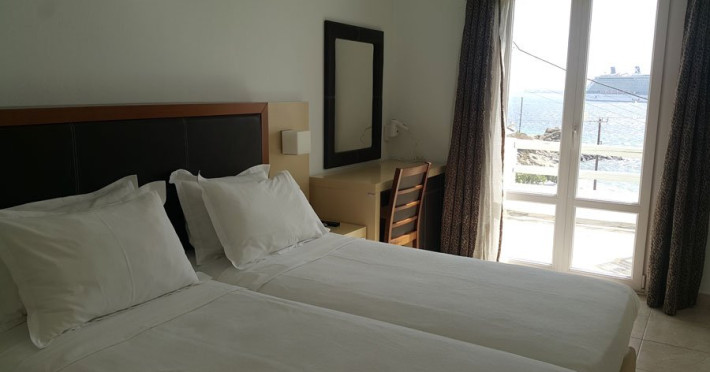 Descriere:Hotelul Bellevue 2* este construit chiar pe malul marii si se afla in apropiere de capitala Insulei Mykonos, Chora (asa cum este cunoscuta localnicilor), la 15 minute de aeroport si la doar 5 minute de noul port.Hotelul Bellevue 2* se bucura de o pozitie privilegiata si ofera privelisti senzationale la apusul soarelui.