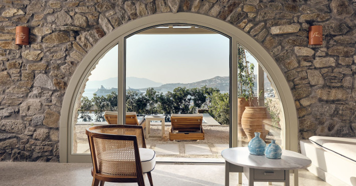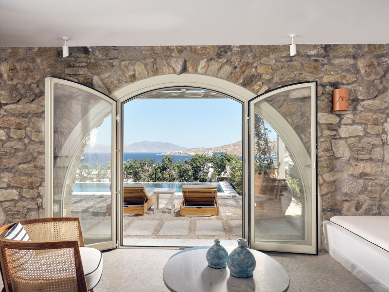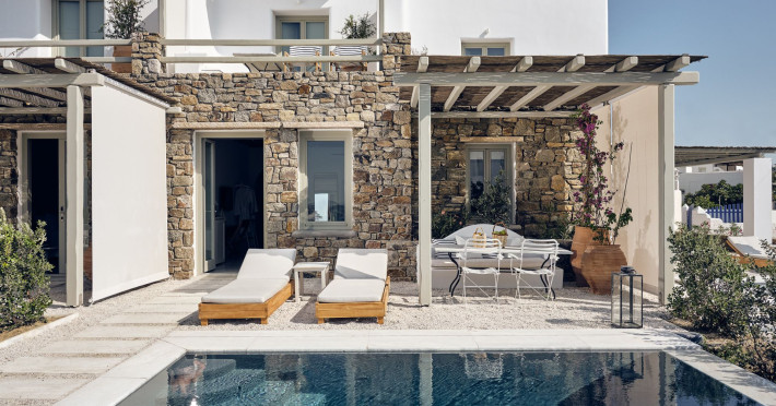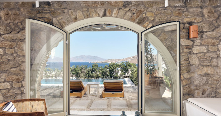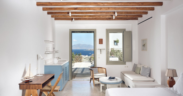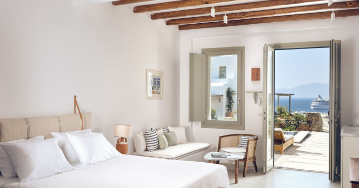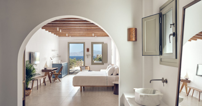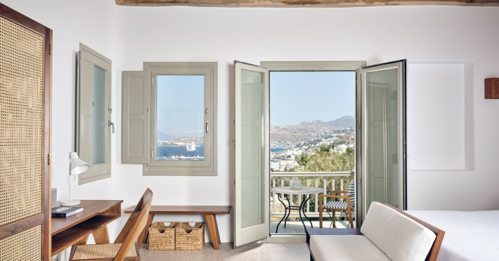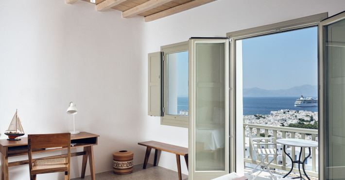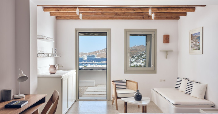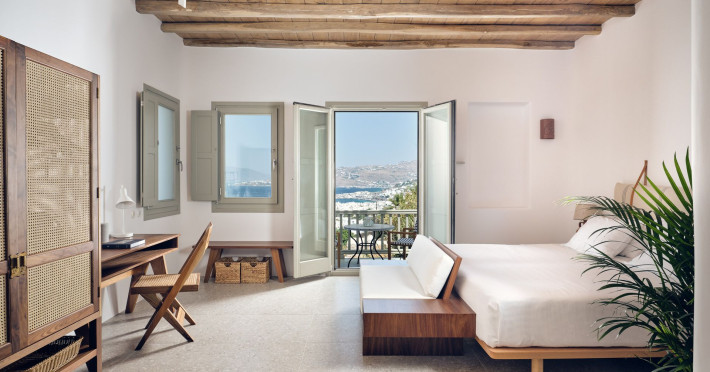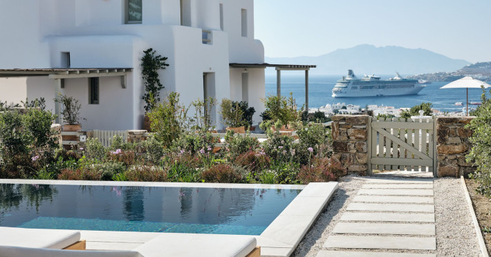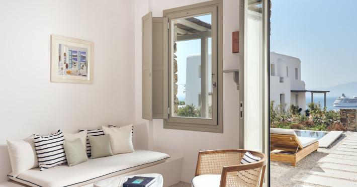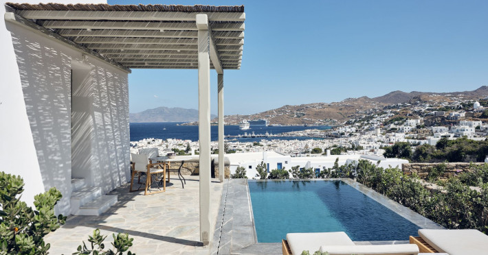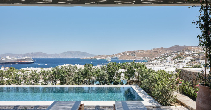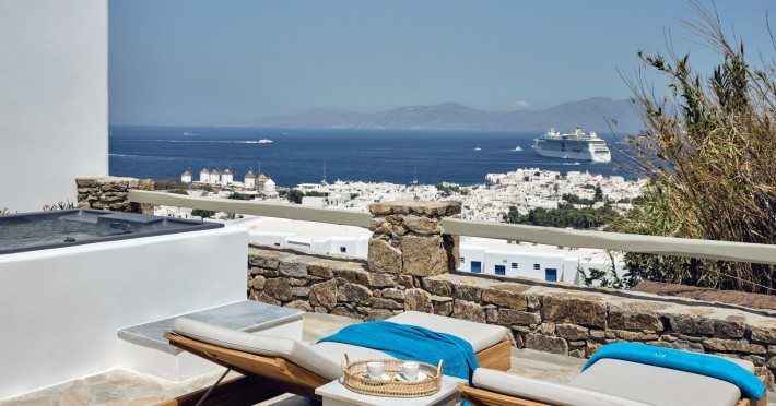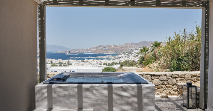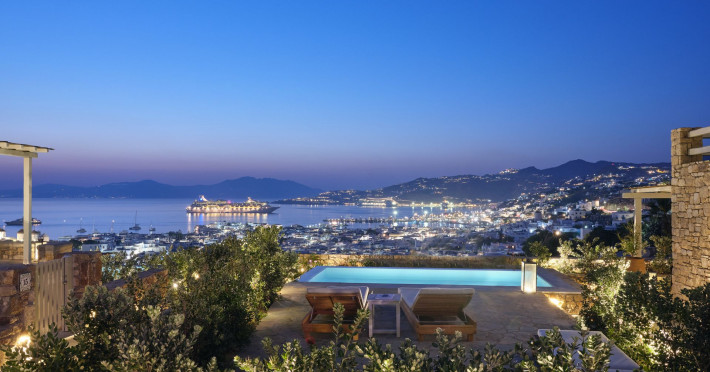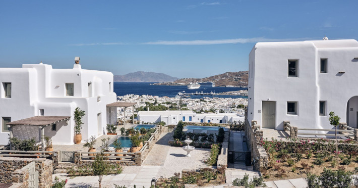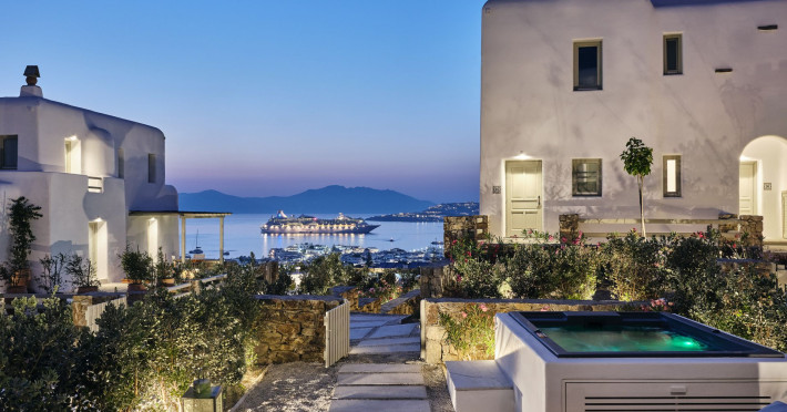 Hilltop Rooms & Suites by BelvedereThe new Hilltop Rooms & Suites offer 26 spacious units designed to host up to 3 guests, this newly residential accommodation option is ideal for travelers seeking proximity to Mykonos heartbeat yet looking for privacy and impeccable hotel service. Every single one of Hilltop luxury rooms and suites comes with breathtaking views of Mykonos Town and the Aegean Sea.The luxury rooms feature outdoor pools, jacuzzis or large yards to cover all guests needs and provide an authentic Mykonian experience. All Hilltop Rooms & Suites are spacious with unique design elements, fabrics, furnishings and textured details. They are built in traditional Cycladic style and their facilities include air conditioning, satellite LCD TV and a luxurious beverage center curated with local snacks & drinks.Enjoy the sense of privacy and promixity to all that Mykonos has to offer:Located a mere 250m away from the main Belvedere Hotel complex, Hilltop Rooms & Suites offers guests a complimentary electric shuttle service so they can enjoy the best of both worlds: the Hilltop's breathtaking views and residential aura and the Belvedere's buzzing gourmet & cocktail scene, including the Matsuhisa restaurant and the Sunken Watermelon bar, among others. Guests can also partake in the wellness delights of the Belvedere Fitness Studio and the renowned Six Senses Spa, while breakfast can either be enjoyed in the serenity of their private balcony, terrace or garden or at the Belvedere pool buffet. The Hilltop's specially appointed hosts can help facilitate requests throughout the day, while the Magic Garden, exclusively available to Hilltop denizens, is the perfect place to treat your friends with delicious cocktails and snacks in the privacy of your home away from home.