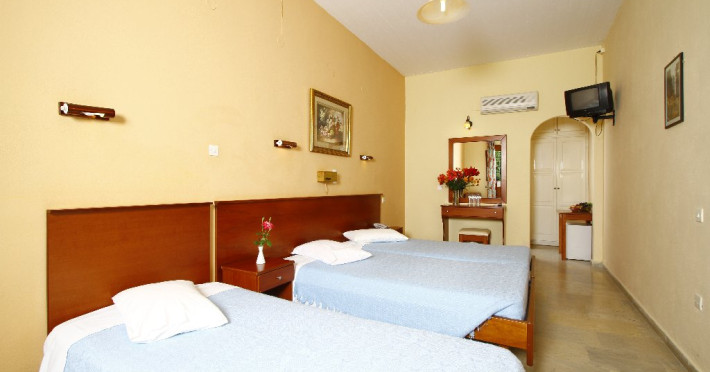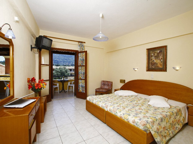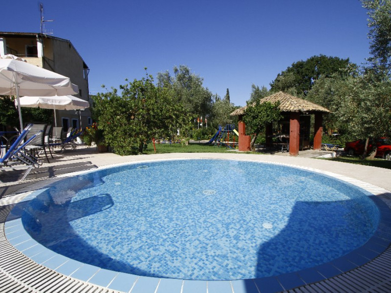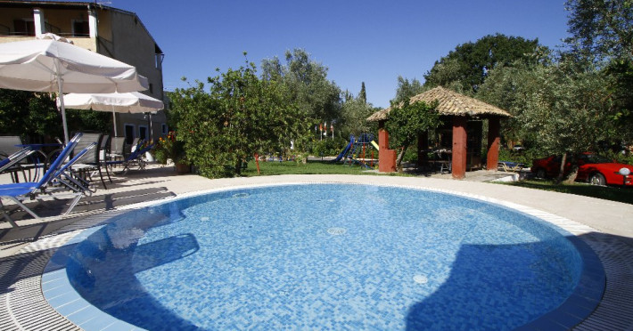BINTZAN INN HOTEL - 3* The 3-star Bintzan Inn Hotel is situated in a tranquil spot surrounded by woodlands in Gastouri, approximately 3.5 km from the nearest beach and 6 km from Corfus international airport. Comprising five buildings of traditional Corfiot architecture, this hotel offers quality budget accommodation in double, triple and family rooms. Guests also have access to two swimming pools, a restaurant, a lounge bar and an on-site health club featuring wellness treatments and a fitness room. The property is suitable for disabled guests. There is 1 room adapted for wheelchair access. Official category: 3 stars ACCOMMODATION 84 units in total: 12 x Single Room Garden View - approx. 25 m2 (max 1 pax: 1 double bed or 2 twin beds): standard accommodation facilities & services 43 x Double Room Garden View - approx. 25 m2 (max 2+1 pax: 2 single beds, 1 extra folding bed): standard accommodation facilities & services 10 x Superior Double Room - approx. 30 m2 (max 2+1 pax: 3 single beds): standard accommodation facilities & services 11 x Triple Room Garden View - approx. 40 m2 (max 3 pax: 3 single beds): standard accommodation facilities & services 8 x Family Room - approx. 45 m2; 1 separate bedroom & 1 sitting/sleeping room (max 4 pax: 1 double bed, 2 sofa beds): standard accommodation facilities & services Standard accommodation facilities & services: individual air-conditioning/heating (free), Wi-Fi (free), direct-dial telephone, TV, mini fridge (free), bathtub/WC or shower/WC, hairdryer, balcony/terrace, maid service (daily), towel change (daily), linen change (3 times per week) GENERAL FACILITIES & SERVICES 24-hour reception, lobby, lounge, central safety deposit box (free), TV corner, Wi-Fi in public areas (free), PC corner (extra charge), 2 swimming pools (08:00-22:00), pool sunbeds & umbrellas (free), outdoor shower, terrace, garden, on-site parking (free), first-aid kit, doctor on call (extra charge) FOOD & BEVERAGE/BOARDING TYPE (BB, HB) Main restaurant, lounge bar Bed & Breakfast, Half Board Early breakfast service on request Breakfast (07:30-10:00) is continental buffet Dinner (19:30-21:30) is buffet (for HB guests) Vegetarian & special diet menu available Lunch basket on request 1 day in advance until 12:00 CHILDREN & INFANTS Baby cot (on request with extra charge), childrens pool (08:00-22:00), outdoor playground ENTERTAINMENT & ANIMATION Play room with billiards (extra charge) BEAUTY & WELLNESS Health club: sauna (extra charge), jacuzzi (extra charge), hammam (extra charge), massage room (extra charge), hairdresser (on request & with extra charge), fitness room (free) ACCEPTED CREDIT CARDS Visa, MasterCard ADDITIONAL INFORMATION The operation of certain outdoor venues & facilities is subject to weather conditions Pets up to 6 kg are allowed (on request) WEBSITE: http://bintzaninn.com/