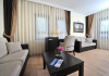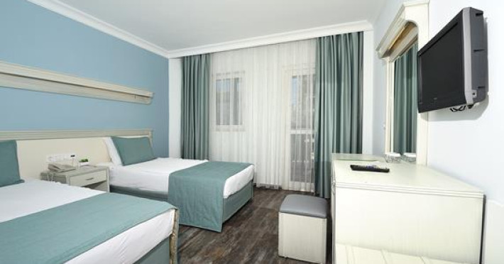 HOTEL AMENITIES AND SERVICES: 15.000 m² Landscape ground. 24 hr Reception. 2 Restaurants. 3 Bars. 1 Gözleme evi, 4 Swimming-Pools, 2 Pools have children section Beach towels per Person will be obtainable free of charge every day at the pool bar. Turkish Bath, Sauna, Steam room. Mini Market, Boutique, Hairdresser, Photoshop, Children Playground, Wireless LAN on prominent places and all rooms, Internet terminal in Lobby, Laundry and Dry cleaning service, 09:00 to 19:00 Nurse, Doctor on call