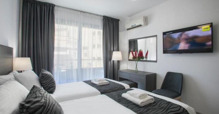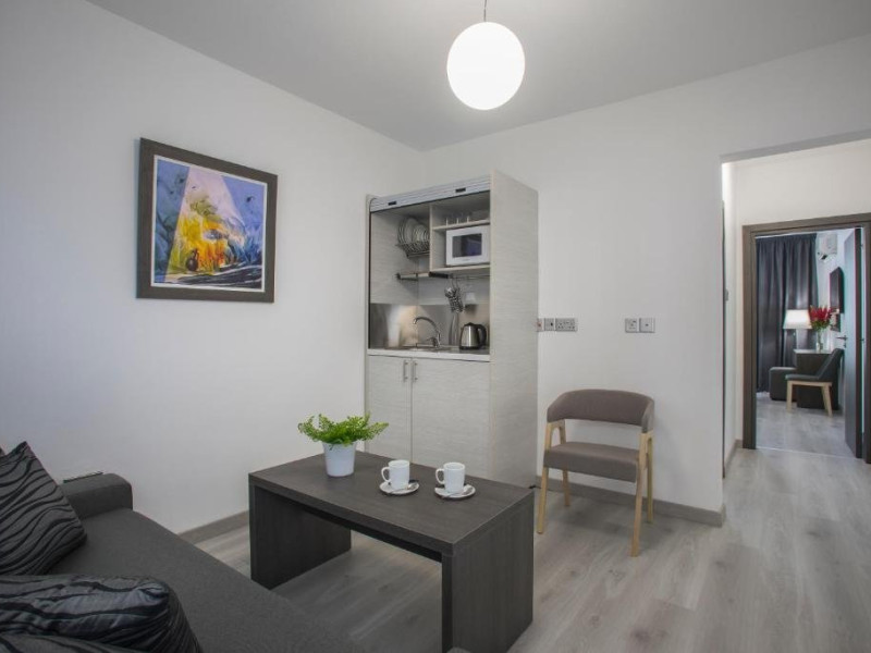 Descriere: Amplasat in centrul plin de viata al orasului, complexul Blazer de apartamente ofera un amestec perfect de confort, comoditate si sofisticare moderna. Pasiti intr-o lume a elegantei contemporane, unde personalul atent va asteapta pentru a va satisface orice nevoie. Apartamentele spatioase si bine amenajate sunt proiectate cu meticulozitate pentru a oferi un refugiu relaxant dupa o zi de explorare sau de munca. Fiecare apartament este mobilat cu gust si dotat cu facilitati moderne, asigurand un sejur perfect si placut. De la confortabile cu unul si doua dormitoare pana la unitatile familiale generoase, oferim o varietate de locuri de cazare potrivite preferintelor dumneavoastra. Locatia excelenta a Blazer Residence va pune la doar cateva minute distanta de cele mai emblematice atractii din Larnaca. Explorati pitorescul portul de agrement Larnaca, plimbati-va de-a lungul celebrei promenade cu palmieri sau cufundati-va in istoria bogata a Bisericii Sf. Lazr si a Castelului Larnaca.