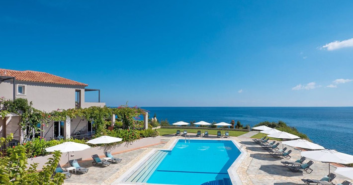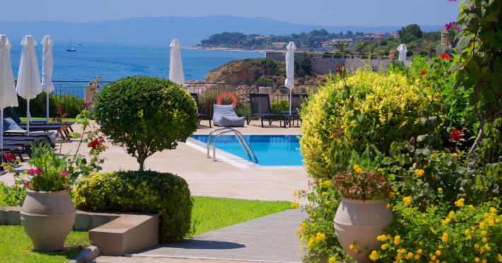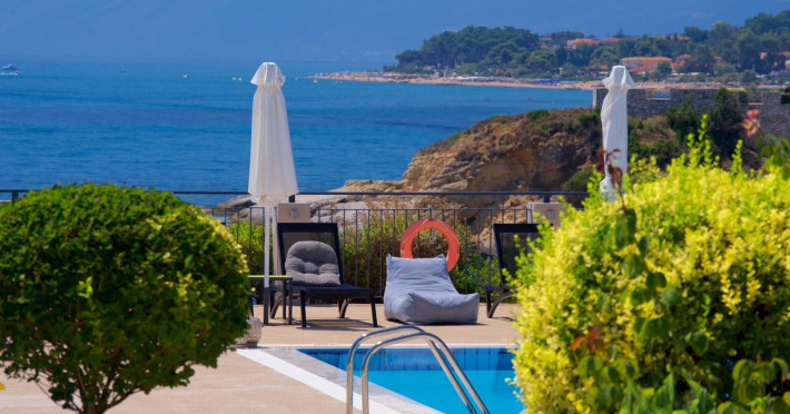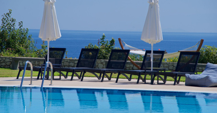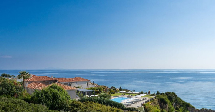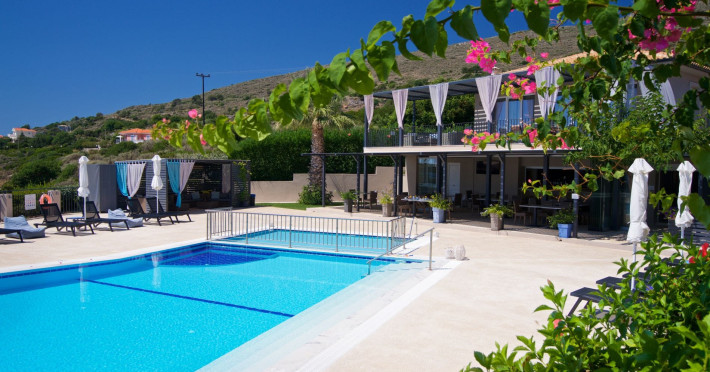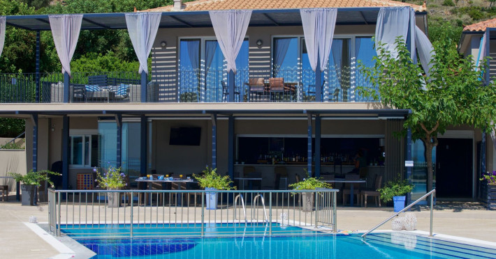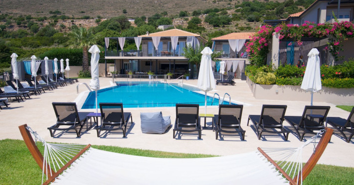 Sitting prettily on a peaceful promontory, the Blue Jasmine Hotel offers guests beautiful endless sea views of Southern Kefalonia from every angle, just a five-minute drive from the wide, sandy beaches of Skala.Blue Jasmine is a cozy family-run hotel with 12 colorfully designed suites, an expansive garden filled with flowers and a large swimming pool, conveying a mood of peace and relaxation.
