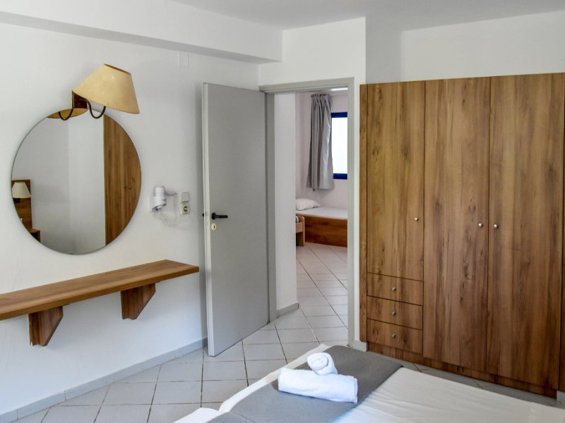Dotari camere: Toate camerele ( dubla & family- land view/ partial sea view) au baie, uscator de par, loc de luat masa, tlevizor, frigider,