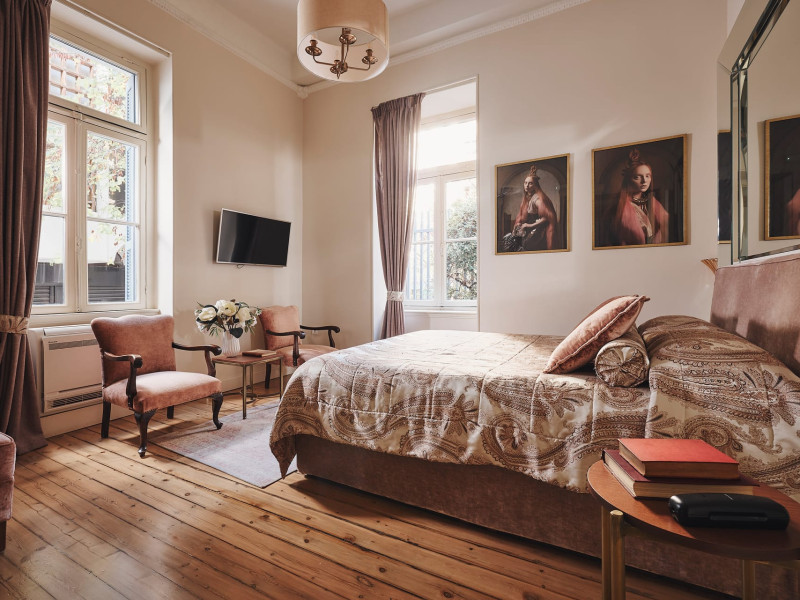 Bohemian Suites Athens: A Tranquil Oasis in the Heart of the CityNestled in a neoclassical building dating back to 1856, Bohemian Suites Athens offers an enchanting blend of high ceilings and eclectic design. Located just 500 meters from Dexameni Square and approximately 600 meters from Kolonaki Square, this serene retreat provides an ideal base for exploring Athens.Surrounded by a spacious and beautifully maintained garden, the property offers a peaceful escape amidst the city’s vibrant energy. Its central location places you within walking distance of iconic attractions such as the Benaki Museum, the Museum of Cycladic Art, Syntagma Square, and Zappion – National Garden, which is just a 10-minute walk away.Each suite is thoughtfully designed for comfort and style. All accommodations feature air conditioning, a flat-screen TV, and a private bathroom with a shower, bathtub, or both, along with a hairdryer. Selected rooms also include balconies, while others boast picturesque garden views.Breakfast is served daily from 08:00 to 10:30 am. During spring and summer, guests can enjoy their meal on-site, while in autumn and winter, an a la carte breakfast is offered in-room for added coziness.The Front Desk operates from 09:00 am to 9:00 pm. For arrivals outside these hours, please contact us in advance to arrange all necessary instructions for a smooth late check-in experience.Bohemian Suites Athens is located 34 km from Eleftherios Venizelos Airport, making it easily accessible for travelers.Discover a unique blend of tranquility, charm, and convenience at Bohemian Suites Athens—your serene oasis in the heart of the city.
