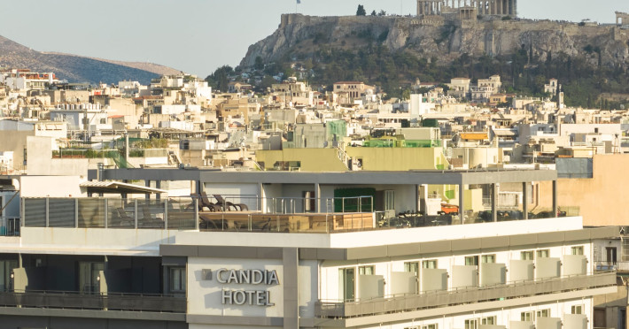 Welcome to the Candia Hotel, your friendly hotel in the city of Athens, which promises you a very pleasant & comfortable stay.Candia Hotel is in the centre of Athens, on the edge of the car restricted area, opposite the Larissis railway station & near the Metaxourgio underground station, within walking distance from Omonia Square & the commercial district of Athens, close to the famous National Museum.The Candia Hotel is an example of those simple European properties that provide comfort & first class services at very reasonable prices. All rooms in the hotel are air-conditioned & have private amenities.The most notable features of Candia Hotel are the excellent Greek restaurant, the rooftop swimming pool, the airy public lounges & those of the bedroom balconies looking out on Acropolis. In addition a small bar is a welcome heaven after the sight-seeing.HOTEL SERVICESCandia Hotel offers the guests a restaurant and a bar,a plunge pool, cafeteria, breakfast hall and a meeting room. Free wireless internet access in the entire building is offeredA Superior Tourist Class Hotel which is within walking distance from Omonia Square, the commercial district of Athens and also close to the famous National Museum. It is ideally situated being just 30km from the International Airport, opposite the Larissis railway station and near the Metaxourgio underground station.
