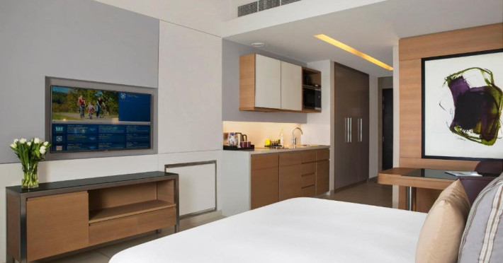 Capital Centre Arjaan by Rotana oferă 259 de studiouri și suite moderne, complet mobilate. Toate camerele includ o chicinetă complet utilată și o zonă de living. Alte facilități includ o mașină de spălat, cuptor cu microunde și frigider, precum și TV prin satelit; ideal pentru oaspeții pe termen lung care doresc să se stabilească in capitală.