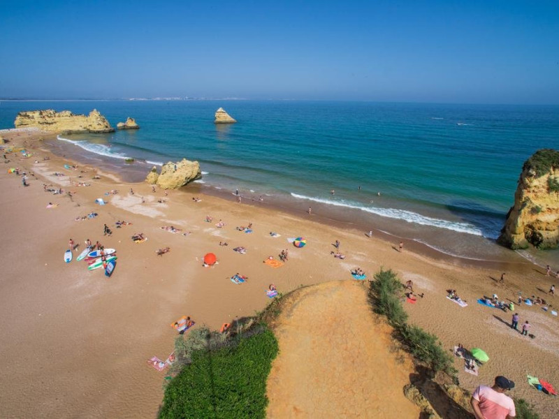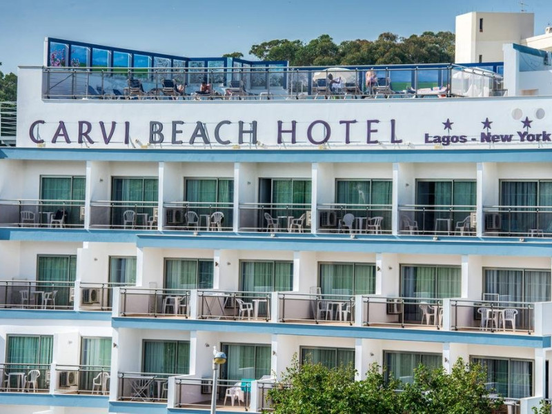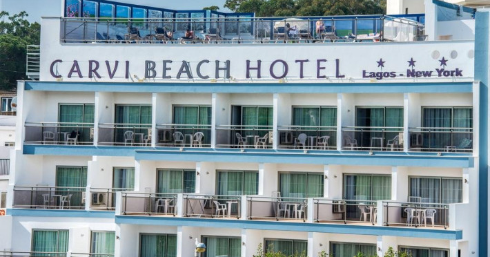 Descriere HOTEL CARVI: Hotelul Carvi ofera clientilor sai servicii corecte pentru categoria sa si se bucura de o locatie deosebita. Tip masa: Mic dejun Localizare HOTEL CARVI: In statiunea Lagos, la cateva minute de mers pe jos de centrul istoric al statiunii si in apropiere de plaja Dona Ana. Plaja: Plaja publica Dona Ana se afla peste drum de hotel (50m). Plaja este lata, cu nisip si intrare lina in apa. Accesul la plaja se face pe scari. Dotari camere: Hotel CARVI are canere duble cu vedere la gradina sau vedere laterala la mare si junior suite cu vedere frontala la mare. Toate camerele sunt dotate cu balcon, aer conditionat, TV LCD cu satelit, internet wireless gratuit, uscator de par, seif (cu plata 2 EURO/ zi), minibar (cu plata 5 EURO/ zi). Patul suplimentar pentru copii este pat pliant, dar exista si camere triple cu 3 paturi normale. Facilitati HOTEL CARVI: Oaspetii hotelului beneficiaza de urmatoarele facilitati: piscina exterioara pe acoperisul hotelului, terasa amenajata cu sezlonguri, terasa-bar mic dejun continental, snack bar, masa biliard, parcare publica gratuita in fata hotelului. Pagina web: www.carvialgarve.com