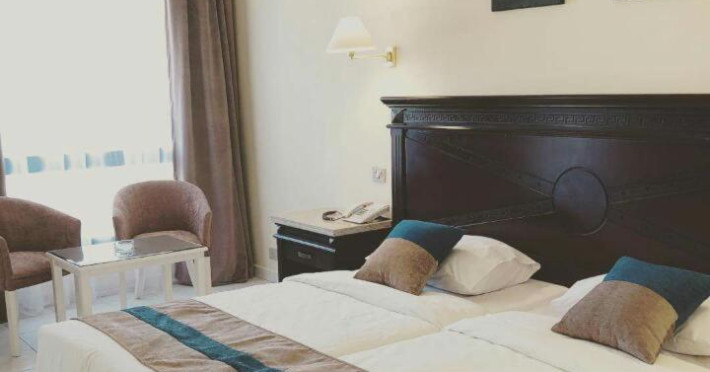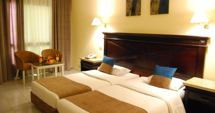The hotel Cataract Resort Naama Bay **** is located in the vicinity of a sandy beach. There is a shuttle between the hotel and the airport (for a fee). On the beach are beach towels available. The air-conditioned hotel has a 24h reception (check-in iThe hotel Cataract Resort Naama Bay **** is located in the vicinity of a sandy beach. There is a shuttle between the hotel and the airport (for a fee). On the beach are beach towels available. The air-conditioned hotel has a 24h reception (check-in is possible around the clock), Wi-Fi as well as internet access. Outside there is a separate childrens pool, where pool towels are available for free. Furthermore, you can relax outdoors on the terrace. Your valuables can be stored in the hotel safe. There is also a laundry service available at an additional cost to customers. Ironing equipment can be rented at the hotel for a fee. For your comfort, in addition to the concierge service the hotel page will ensure you are looked after. If necessary, you can contact the medical centre (for a fee). For conventions and other business meetings, the hotel offers a conference area. Visa is accepted as means of payment. Due to its barrier-free facilities , such as barrier-free entrances, the hotel is also suitable for wheelchair users. Catering As catering services the hotel offers breakfast only. Breakfast is offered American, continental or from the buffet. Sports amp; Leisure To keep your fitness up on holiday, there is a gym for guests to use. During your holiday you can also take part in aerobics and Zumba courses. For your wellbeing the hotel also offers massages (extra fee). Additional information The hotel staff speak English, Italian, Russian and Arabic.