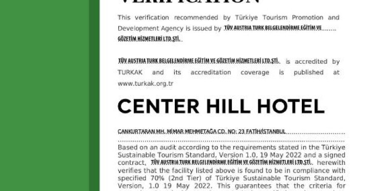 Hotelul Center Hill se află la 900 de metri de Palatul Topkapi și de Muzeul Hagia Sophia.