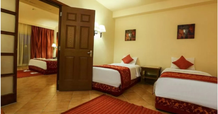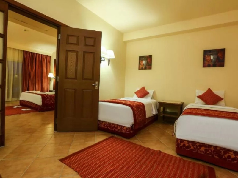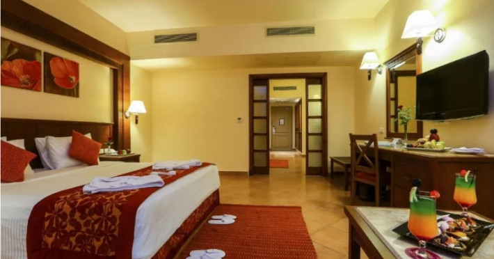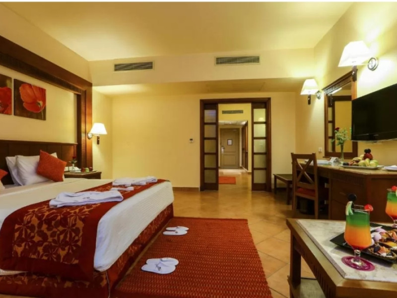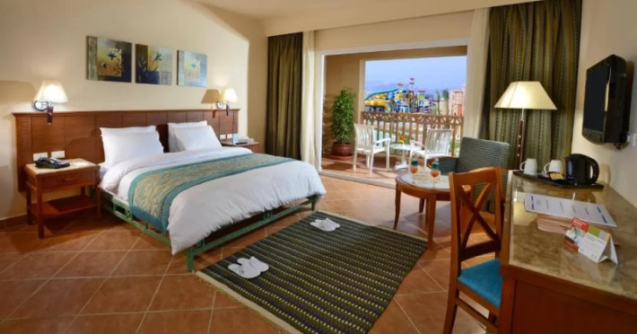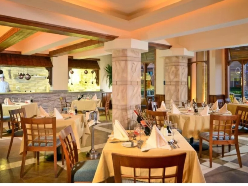 The hotel Charmillion Club Aqua Park is located approximately 1 km from the private rocky beach. The old town is around 26 km away. There is a shuttle between the hotel and the airport (for a fee) - transfer time around 10 minutes. The beach is patroThe hotel Charmillion Club Aqua Park is located approximately 1 km from the private rocky beach. The old town is around 26 km away. There is a shuttle between the hotel and the airport (for a fee) - transfer time around 10 minutes. The beach is patrolled by a lifeguard and separated from the hotel by a road.. Here, there are sun loungers, cushions, sun umbrellas and beach towels available. At the beach there is a bar serving refreshing drinks. To reach the beach a shuttle is provided. The seasonally air-conditioned, GPS-verified hotel has a 24h reception (check-in is possible around the clock), a lobby bar, Wi-Fi, internet access (for a fee), a lift, a supermarket and other shops, cash machine, a hairdresser, a jacuzzi, a first aid kit as well as parking spaces (limited). In the outdoor area you will find a garden as well as a seasonally heated pool (open all year), where sun loungers, sun umbrellas and pool towels are available for free. There are also 2 separate childrens pools with 22 water slides (type open slide). Furthermore, outside you can find a terrace. You can store your valuables in the safe, and your luggage in the hotels storage room. For your entertainment, the hotel offers a theatre, a casino and a disco. For very young guests, kids chairs can be provided). There is also a laundry service available at an additional cost to customers. Ironing equipment can be borrowed at the hotel. For your comfort, in addition to the concierge service the hotel page will ensure you are looked after. If necessary, you can contact the medical centre at any time (for a fee). Guests at the accommodation can get a wake-up call from the hotel personnel. The energy supply is 220 Volts. For conventions and other business meetings, the hotel offers a conference area (extra fee) with a total of 80 seats. A photographer can also be ordered from the hotel for business events. At the reception, tickets are offered for excursions in the area. Smoking is permitted in the hotel. For guests on their honeymoon, the hotel has special offers such as personalised rooms/articles, rooms with a particularly romantic location and view, an extra large king size bed or a basket of fruit in the room. In your hotel, a lot of focus is placed on sustainability. This includes the provision of soap, shampoo and lotion dispensers, a central room air-conditioning and environmentally-friendly cleaning. That is why the hotel Charmillion Club Aqua Park was also awarded a sustainability certificate. Euro/Master Card is accepted as means of payment. Due to its barrier-free facilities , such as a hotel door that can be opened manually, separate, barrier-free entrances, wheelchair accessible rooms, a wheelchair accessible lift and wheelchair-accessible bathrooms, the hotel is also suitable for wheelchair users (dimensions: entrance door width: 93 m, door width room: 93 m, sink height: 70 m). Catering As catering services the hotel offers all-inclusive and half board. Breakfast is offered from the buffet. Enjoy your lunch from the buffet or as a set meal. Dinner is also served as a buffet or à la carte. Half board includes lunch. When booking all-inclusive, breakfast, lunch and dinner are included. As part of the all-inclusive service, local alcoholic beverages (24h) are available around the clock and at no extra charge. For the meals, there are a buffet restaurant with terrace (Italian, Mediterranean, calorie-reduced, gluten-free and vegetarian dishes) and several bars, a 24h snackbar as well as the pool bar. For dinner, guests are asked to wear appropriate clothing in the restaurant. Distances Discotheque: approx. 5 km Airport: approx. 4,5 km Bus stop: approx. 25 km Cinema: approx. 18 km Distance to the sea: approx. 1 km Nearest dentist: approx. 20 km Pharmacy: approx. 3 km Hospital: approx. 25 km Tourist information: approx. 3 km Business center: approx. 3 km Sports amp; Leisure To keep your fitness up on holiday, there is a gym for guests to use. In the surrounding you can also take advantage of a range of water sports, including bananaboat riding and water aerobics. During your holiday you can also take part in aerobics courses. Those who want to practice archery will find facilities for this at the hotel. With beach volleyball, darts and volleyball various other sports offer a lot of variety on holiday. In addition to a tennis court (at extra cost) with floodlighting there is also a tennis rental. Furthermore, various water sports such as diving are offered in the area. For snorkelers equipment is provided at a diving rental shop. A sauna (extra fee) awaits you in the hotels own spa. The hotel also offers massages (extra fee) and beauty treatments (extra fee). Let yourself be pampered in the Hamam (extra fee). Infants can be looked after in the hotels own baby club. For older children the care takes place in the childrens club. There is a babysitting service in the hotel (extra fee) . The mini disco also offers age-appropriate entertainment for young hotel guests. In terms of adult entertainment, evening shows and live music are presented and there is a games room available to use. Additional information The 3-storey hotel, newly built in 2012, has a total of 302 rooms. Check-in is possible from 1400 hrs, check-out until 1200 hrs. The hotel staff speak English, German, French, Italian, Russian and Arabic.