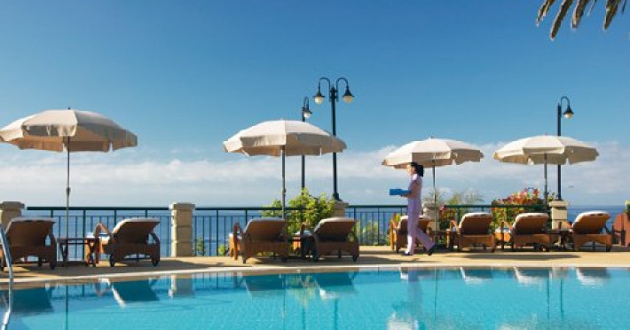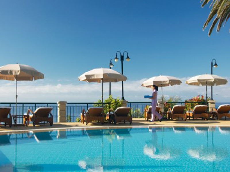 Localizare: situat la mai putin de 2 km de centrul orasului Funchal, pe o stanca ce ofera o priveliste spectaculoasa asupra Oceanului Atlantic . Facilitati hotel: are 201 camere si apartamente si ofera: 3 restaurante dintre care unul a fost premiat cu o stea Michelin in ultimii 3 ani, 4 baruri, o piscina in aer liber, o piscina acoperita, o piscina cu apa de mare, internet (gratuit doar in lobby), room service, baby sitting, rent-a-car, doctor. Dotari camere: camerele standard (suprafata aprox 30 mp) pot avea vedere catre munte sau vedere laterala la mare si toate ofera: balcon, aer conditionat, seif, telefon, TV, sistem video, baie, uscator de par. Activitati: programe de animatie,centru de scufundari,centru SPA, tenis de camp, tenis de masa, sala de gimnastica, loc de joaca pentru copii, biblioteca, sala de jocuri, jacuzzi, baie de aburi, sauna, sala de conferinte. Pentru unele activitati se pot percepe taxe suplimentare. Tip masa: mic dejun, demipensiune sau pensiune completa.