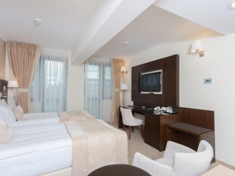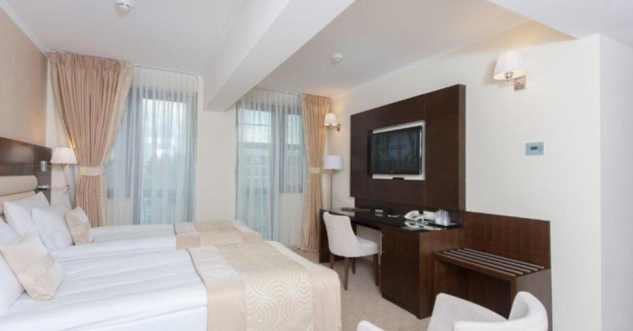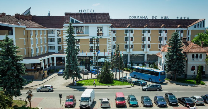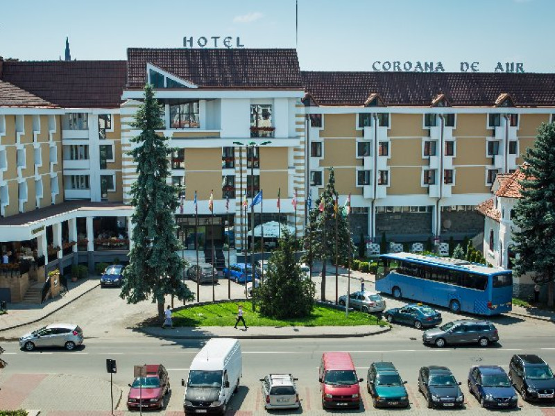 Hotelul Coroana de Aur este situat in centrul orasului Bistrita, la 500 de metri de piata principala din secolul al XIV-lea si de biserica. Hotelul ofera facilitati de masaj, receptie cu program non-stop si birou de bilete. Camerele si apartamentele de la Hotelul Coroana de Aur sunt dotate cu acces Wi-Fi gratuit si TV prin cablu. Toate camerele au baie privata, unele cu o cada Spa, iar altele cu dus cu hidromasaj.