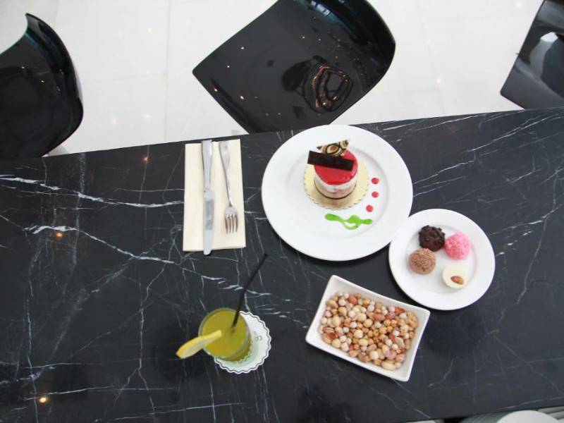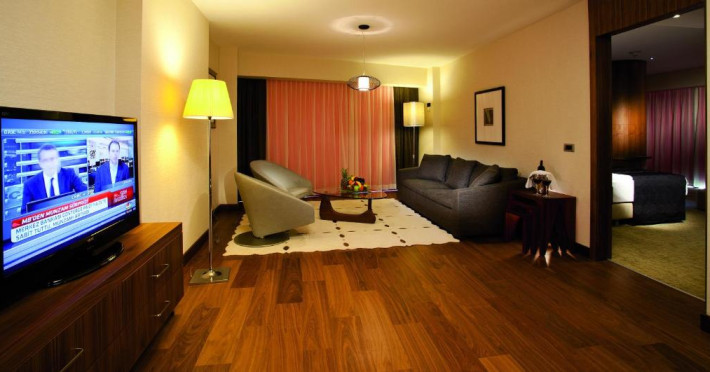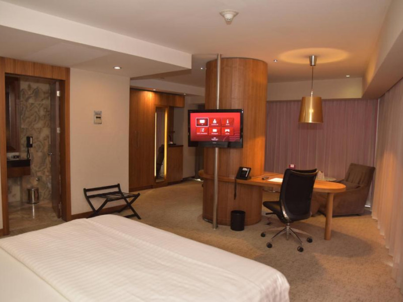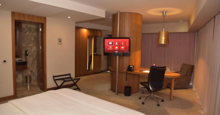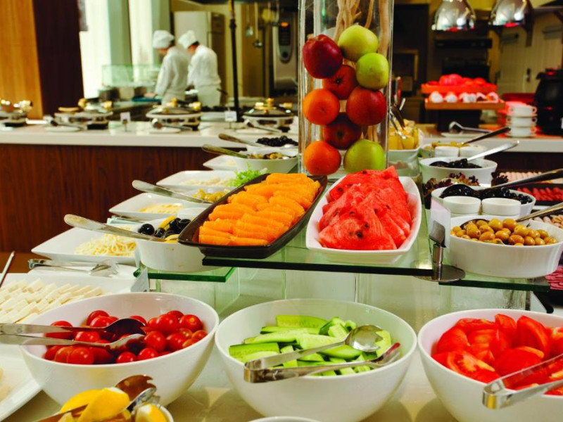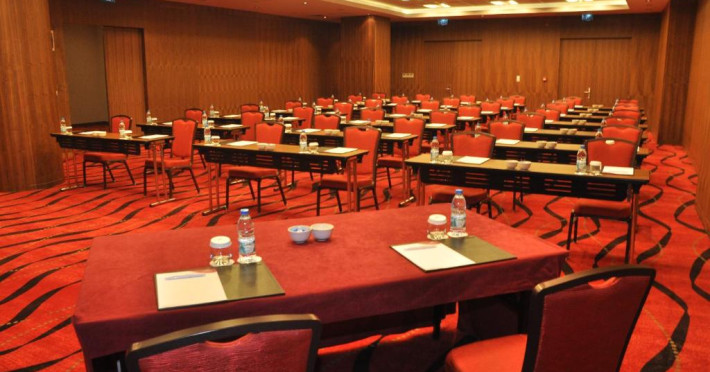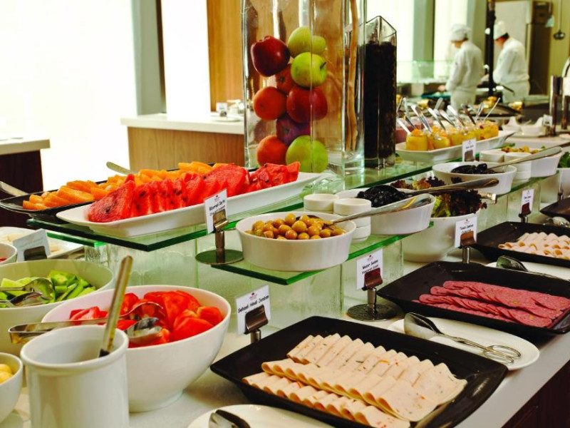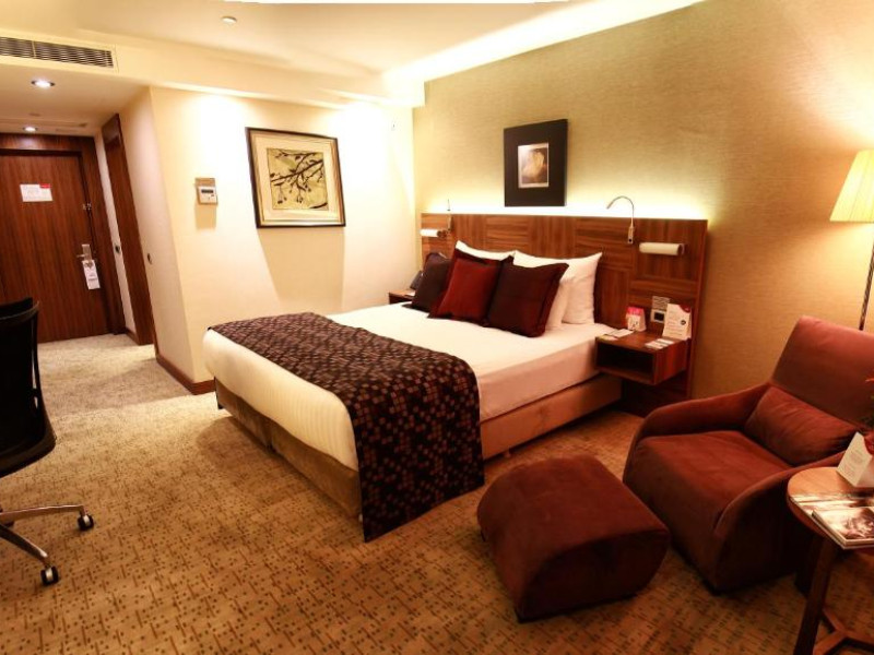 Restaurantul hotelului servește preparate din bucătăria turcească și internațională, iar lounge-ul de la ultimul etaj oferă o panoramă spectaculoasă asupra orașului. Pentru călătorii de afaceri, hotelul dispune de săli de conferințe moderne și centru business.