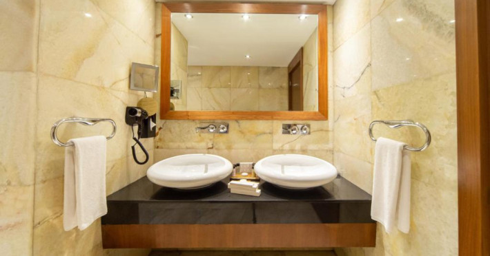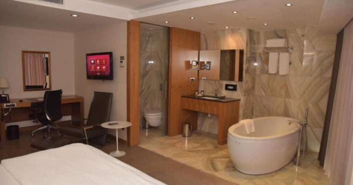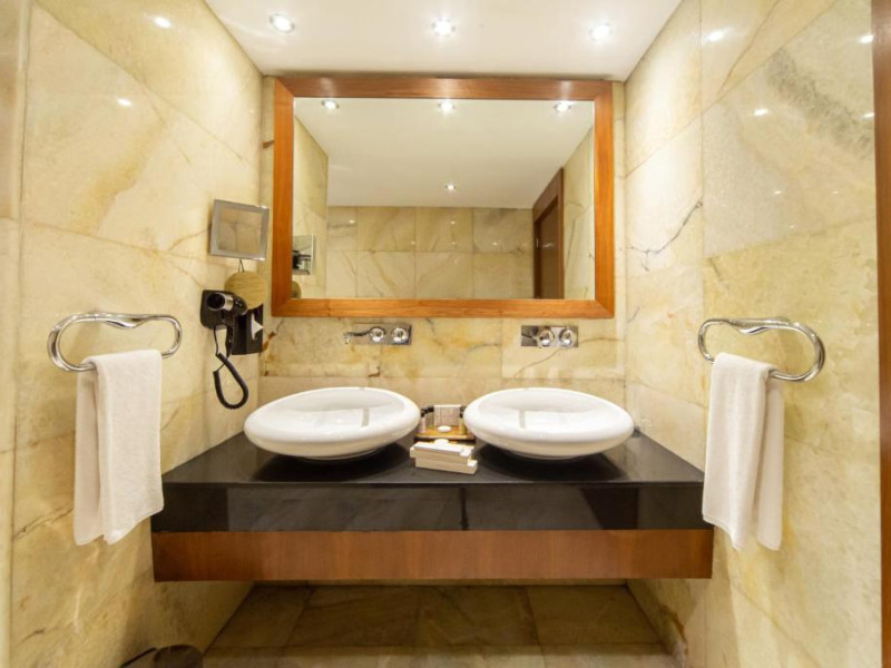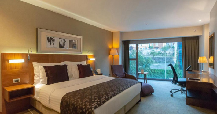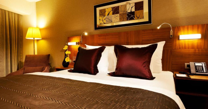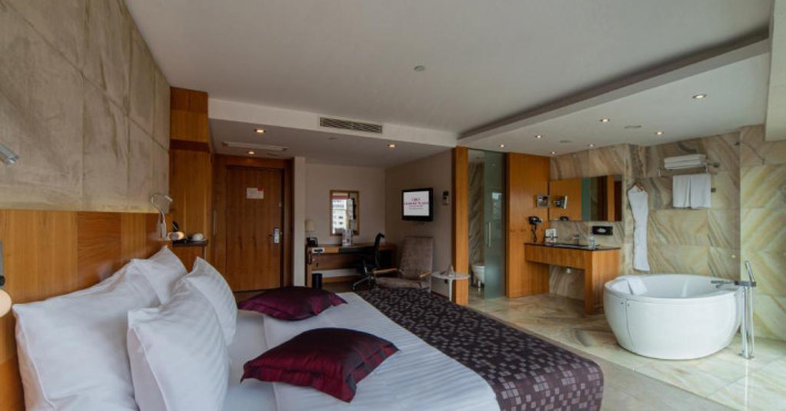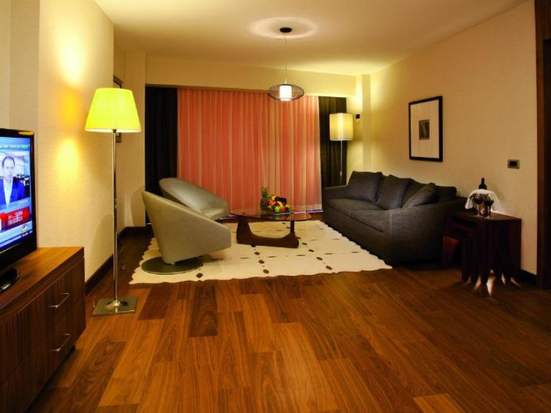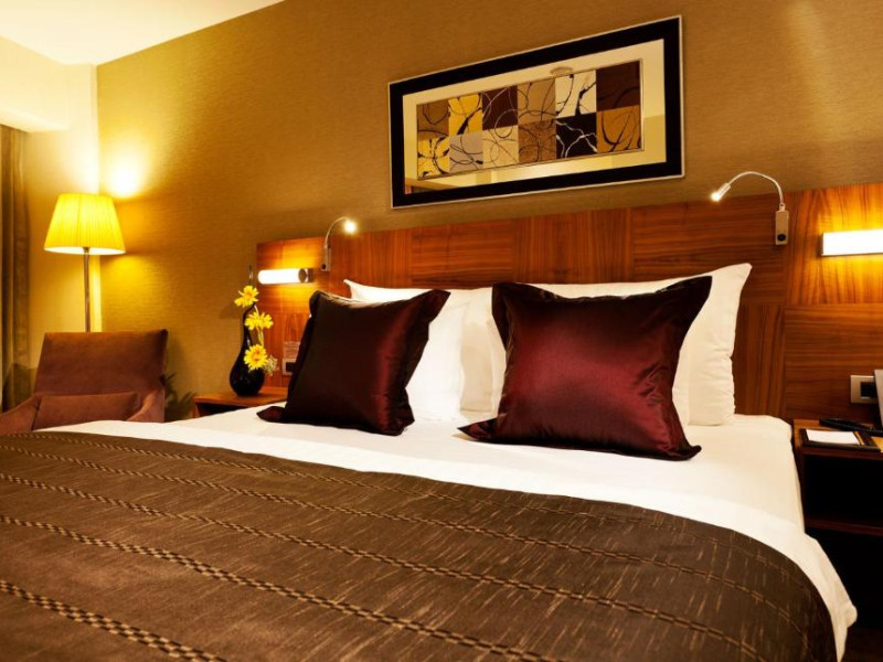 Camerele moderne combină confortul cu eleganța, fiind dotate cu aer condiționat, TV cu ecran plat, minibar și facilități pentru prepararea ceaiului și cafelei. Pentru relaxare, oaspeții au la dispoziție un centru spa cu piscină interioară, saună și baie turcească tradițională.