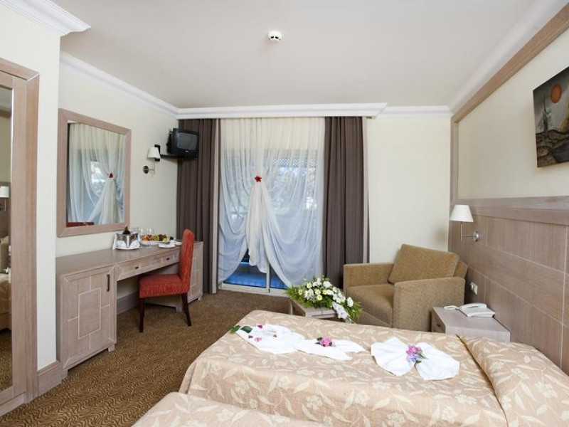 Named after the crystal clear waters of the Mediterranean, our hotel is constructed 400 m to the beach of Belek-Boğazkent and is located only at 40 km from the Antalya International Airport, and at 50 km from the city center of Antalya. ------------------------- ACCOMMODATıON:All our rooms are comfortably decorated and designed for a superb holiday stay. ROOM AMENITIES: Laminate floor or ceramic floor, balcony, key-card system, split air conditioning, satellite TV and music channel, mini bar, safe box (suitable to put the notebooks), direct dial telephone, Wireless- Internet, fire alarm and extinguishing system. BATH AMENITIES: Telephone, hairdryer and bathtub, 220 volt electricity supply. Non smoking and handicapped rooms are available. OTHER ACTIVITIES; CHARGED; SPA center, Hairdresser, Shopping center, Massage / Peeling, Doctor, Laundry, Internet cafe. FREE OF CHARGE; Turkish bath, Sauna, Steam Room, Shock shower, Indoor pool, Jacuzzi, Car park, Safe (suitable to put the notebooks), Chaise lounge, mattress and sun-shades on the beach and pool, Beach towel (with towel-card and against deposit), Wireless internet connection – in the rooms, lobby and public areas internet is free, FOOD AND BEVERAGE; CHARGED;Room service FREE OF CHARGE; A’ la Carte Restaurants (1x per stay – per restaurant), Lobby Bar, Lobby Lounge, Palmeras Garden Bar, Relax Bar, Beach Bar, Beer Garden, Saphir Disco Bar, Cocktail Bar, Mini bar (soft drinks / checked and refilled daily). SPORTS; CHARGED;Billiards, Bowling, Video games, Table football, Illumination for the tennis courts, Tennis racket, Tennis ball Jet ski, Banana, Parasailing Canoe, Pedalos Surf (with license), Golf FREE OF CHARGE; Tennis court, Basketball field, Beach volley, Fitness hall, Table tennis, Water Ball, Aquarobic, Darts, Mini golf, Cinema All Inclusıve: 07.00 – 10.00 Breakfast, Open Buffet 10.00 – 11.00 Late Breakfast 12.00 – 16.30 Snack Buffet (Pool) 12.00 – 16.30 Snacknbsp;Buffet (Beach)nbsp; 12.30 – 14.30 Lunch, Open Buffet 11.00 – 18.00nbsp;Cake, Pie, Ice Creamnbsp; 11.00 – 16.00nbsp;Gözleme (Pool)nbsp; 11.00 – 15.30nbsp;Gözleme (Beach)nbsp; 13.00 – 17.30nbsp;Ice Cream Servicenbsp; 16.00 -- 17.30 Cuisine Atraction 16.30 -- 18.00 Coffee - Pie 19.00 – 21.00 Dinner, Open Buffet 18.30 – 19.30 Dinner, Child Buffet 19.00 – 21.30 Turkish Cuisine A’ La Carte 19.00 – 21.30 Seafood Cuisine A’ La Cartenbsp; 19.00 – 21.30 Italian Cuisine A’ La Cartenbsp; 19.00 – 21.30 Mexican Cuisine A’ La Carte 23.30 – 01.00 Late Snacknbsp;nbsp; For more details click here