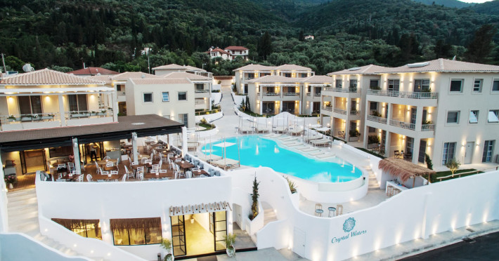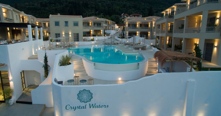 WELCOME TO CRYSTAL WATERSCrystal Waters opened its doors in 2018 providing first class accommodation in Lefkada toour travelers. Our spaces have been designed with love, using simple lines and natural materialscreating an inviting, welcoming ambience just the way a Greek home should feel. Our collectionof light-filled suites have beautiful views to the serene Ionian Sea or feature meticulously lookedafter gardens or pools.The chefs in our two restaurants create incomparable dining experiences for all tastes with anextensive wine list to satisfy even the most demanding wine connoisseur. A dedicated conciergeteam is on hand and we look forward to welcoming you. A stay with us is Greek hospitality at its best.LOCATION Crystal Waters is located on the east side of the island of Lefkada - the only Greek islandconnected to the mainland and accessible by car. The stunning, family-friendly beach of Nikianais a mere 5-minute walk away from the complex making it the ideal starting point for lazy days onthe azur Ionian Sea or exciting excursions discovering the beauties of the island.
