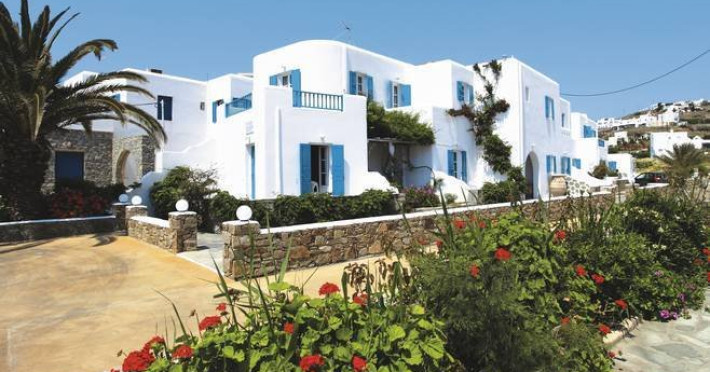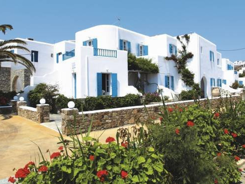 Descriere: complex de apartamente si studiori decorate in stil traditional cicladic situat in apropierea plajei din Ornos