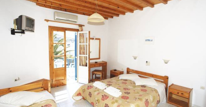 Dotari camere: Camerele hotelului Cyclades Studios dispun de baie cu dus, aer conditionat, TV satelit, seif, minibucatarie utilata, frigider, uscator de par. Unele camere au balcon sau terasa