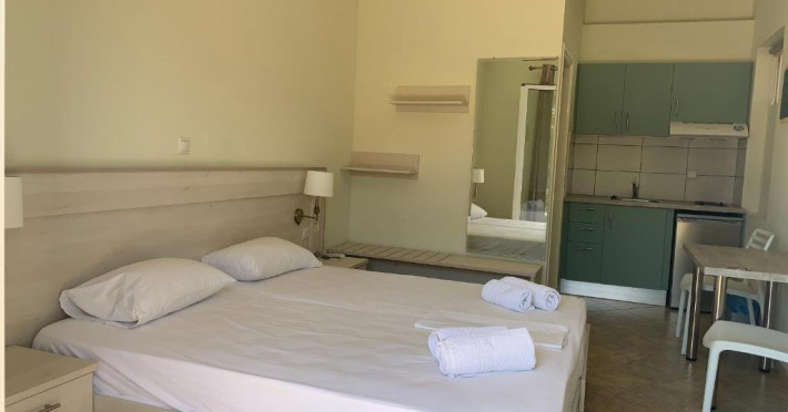 Dotari camere: Studiourile confortabile, mobilate simplu, constau in doua dormitoare cu un pat dublu sau doua paturi de o persoana, un balcon privat cu vedere la mare sau la peisaj rural si o chicineta la indemana, unde oaspetii pot pregati si savura gustari si mese simple. Cu camerele lor confortabile si functionale intr-o locatie linistita pe malul marii, aceste apartamente de vacanta ofera baza perfecta pentru o vacanta in Kefalonia. Pagina Web: https://dionysiosstudios.gr/contact_en.html