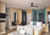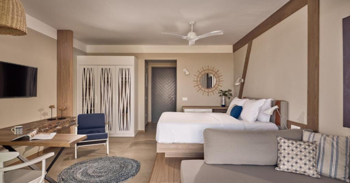 Aparatul de aer condiționat creează o atmosferă plăcută in camere. De pe balconul sau terasa privată ce se găsesc in camere, clienții pot să se relaxeze de minune și să se bucure de priveliștea spre mare. Camere dispun de un pat „Queen size” și de o canapea. De asemenea, există un seif și un minibar contra cost. Echiparea de bază cuprinde de asemenea și un aparat pentru cafea/ceai. Clienții au parte de mai mult confort și datorită setului de călcat. In plus, există un telefon cu apelare directă, canale prin satelit și WiFi. Un sortiment de perne promite o stare de bine confortabilă. In baia dotată cu un duș există un uscător de păr și halate de baie. Articolele de cosmetică creează un confort deosebit in băi.